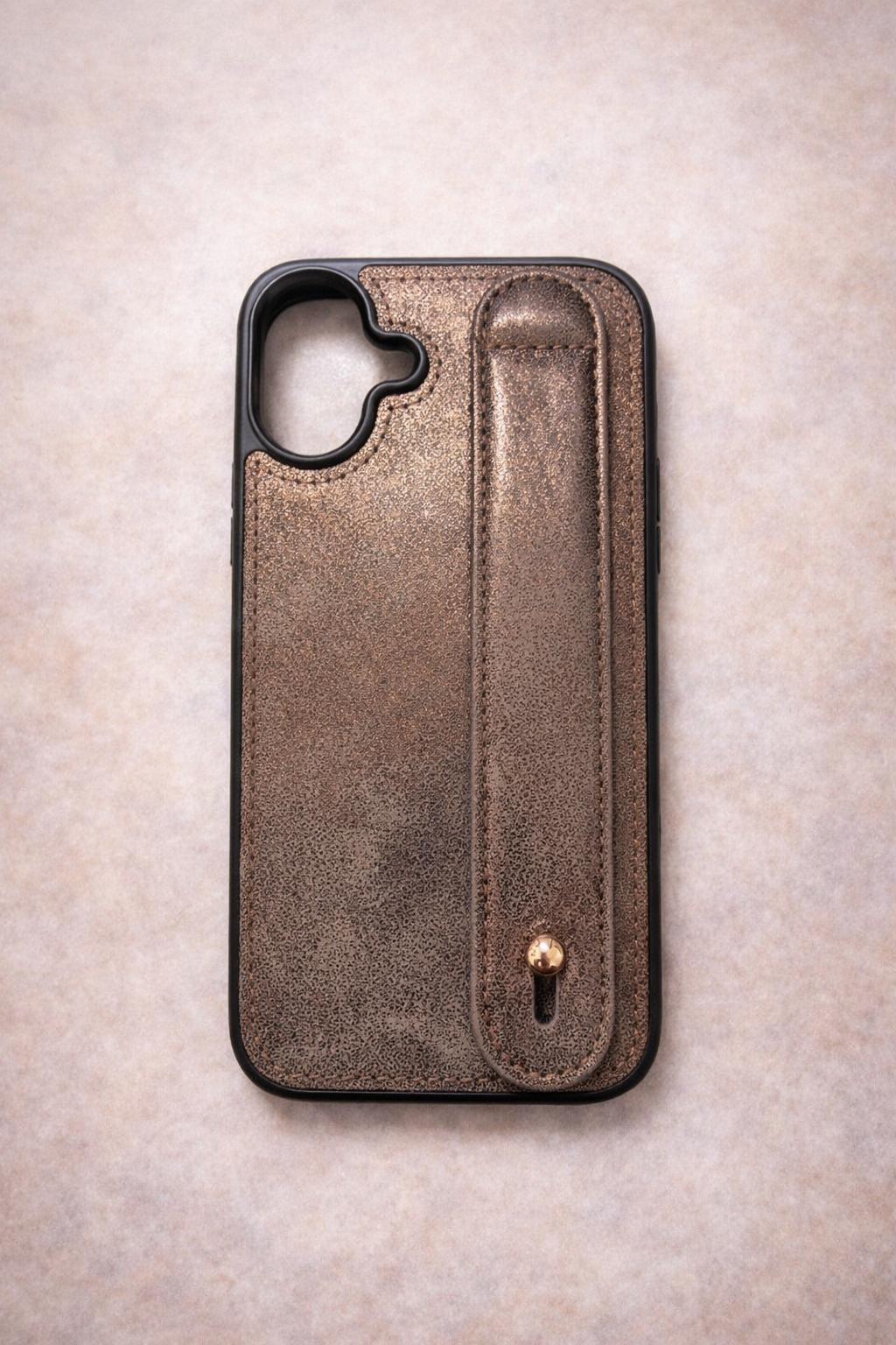 İphone 16 Uyumlu Charmlı ve Harfli Deri Kılıf Kahverengi