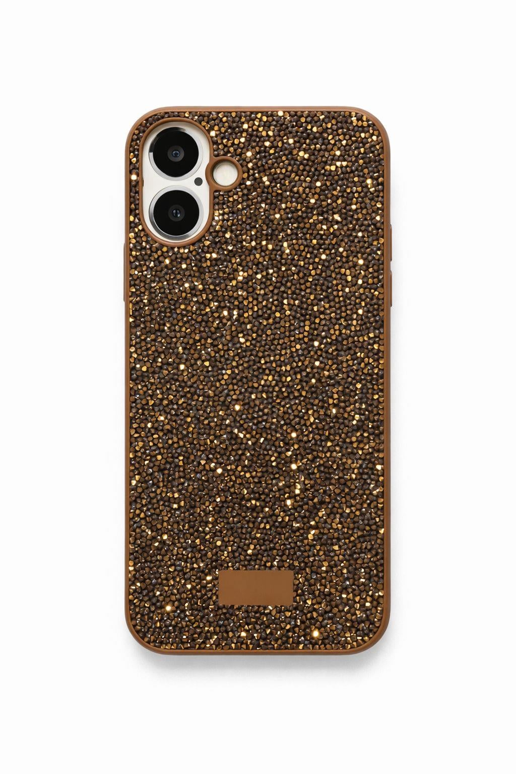İphone 16 Uyumlu Full Taş Detaylı Swarovski Kılıf Bronz
