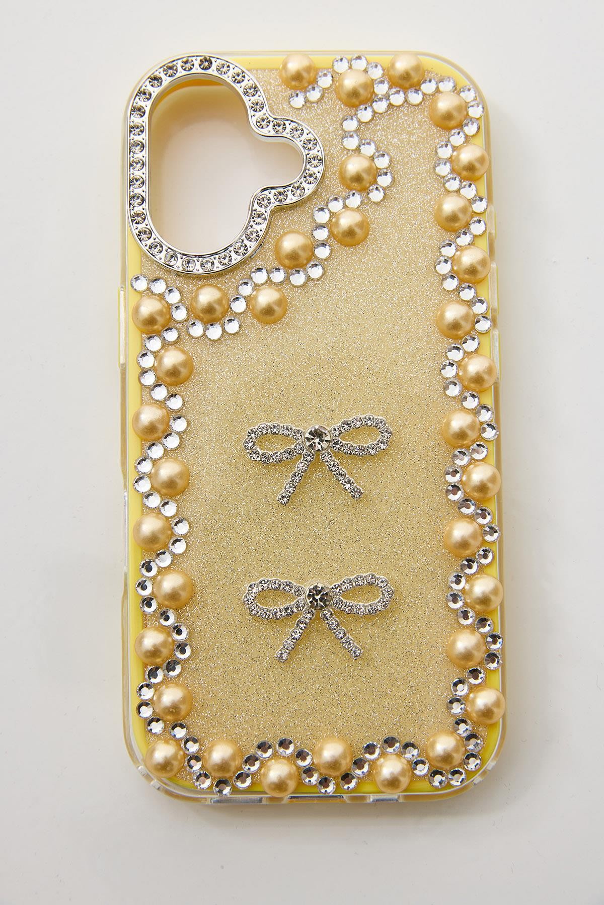 İphone 16 Uyumlu Taş Detaylı Telefon Kılıfı Sarı