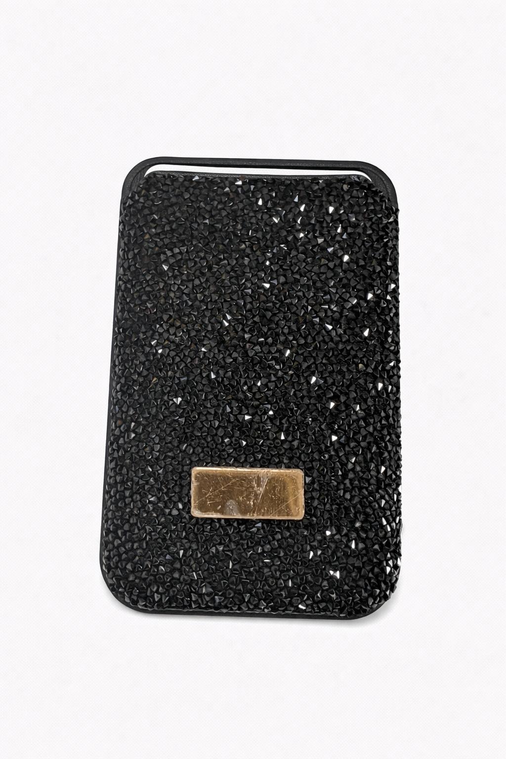 İphone 17 Air Uyumlu Parlak ve Taşlı Kart Bölümlü Kılıf Siyah