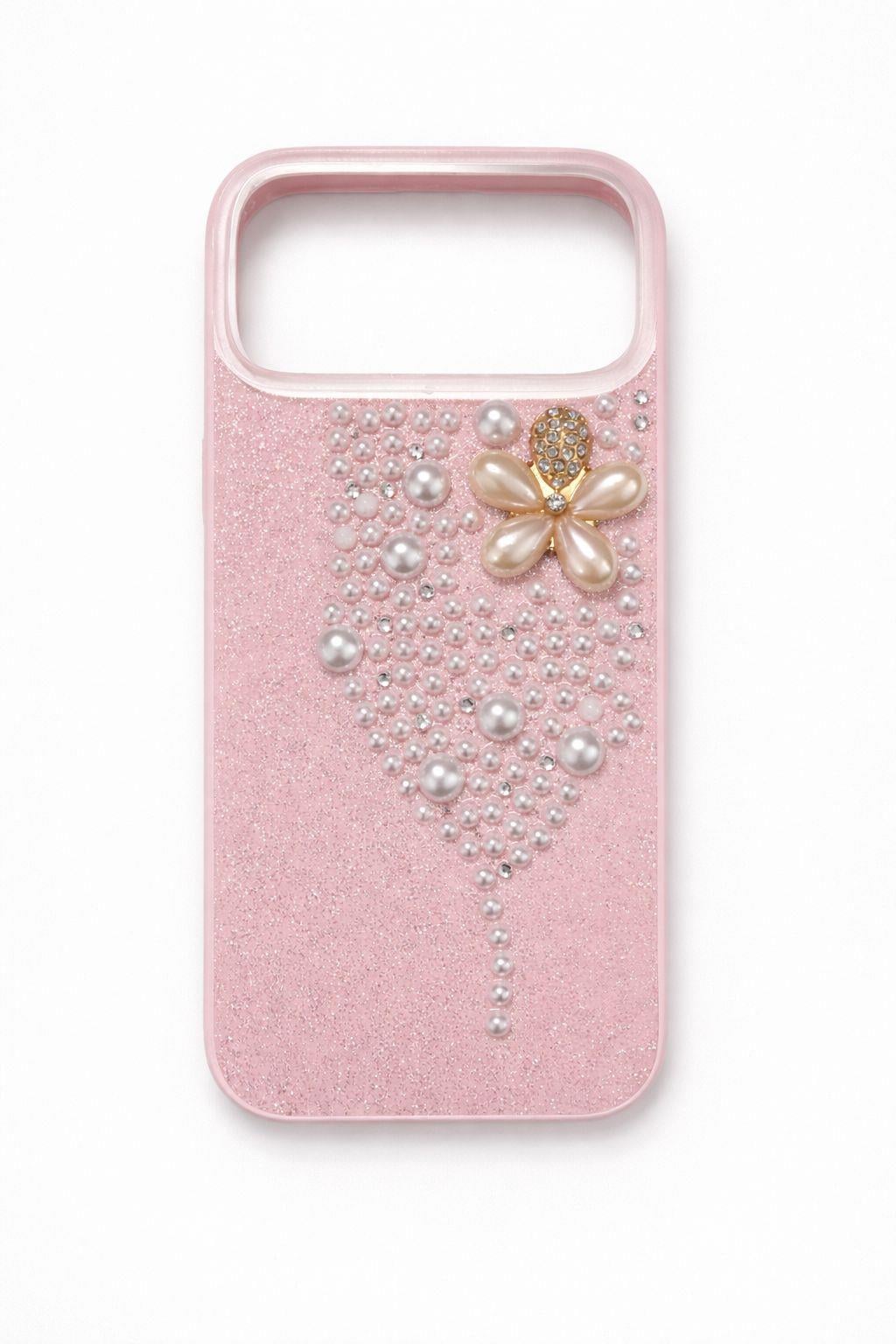 İphone 17 Pro Max Uyumlu İnci ve Glitter Detaylı Kılıf Pembe (300690KLFXPMB)