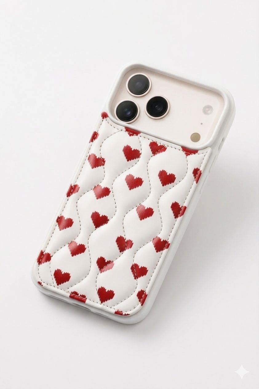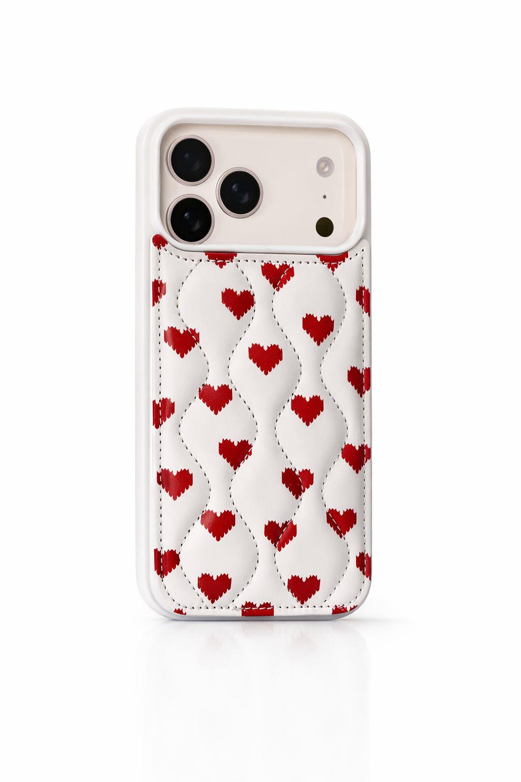 İphone 17 Pro Max Uyumlu Kalp Desenli Kabartmalı Kılıf Beyaz