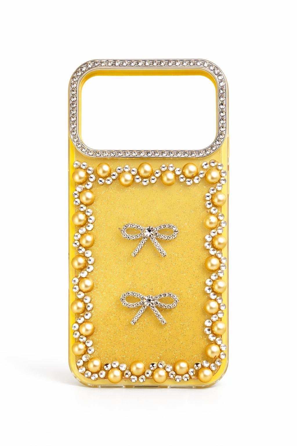 İphone 17 Pro Max Uyumlu Taş Detaylı Telefon Kılıfı Sarı