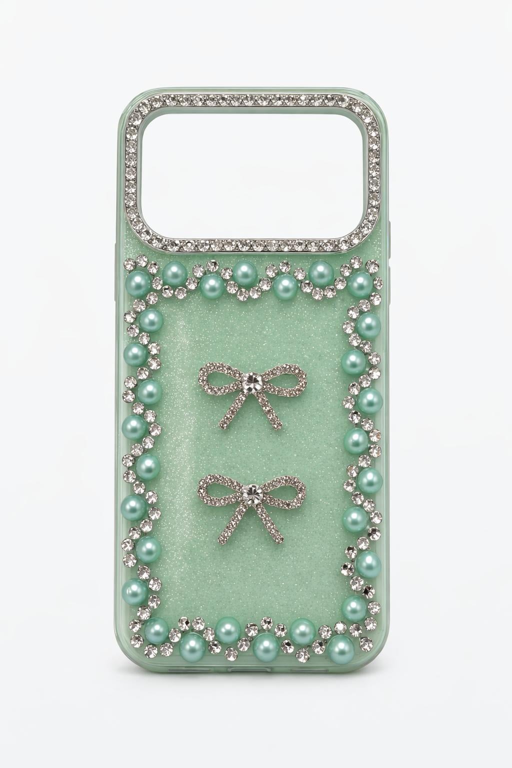 İphone 17 Pro Max Uyumlu Taş Detaylı Telefon Kılıfı Yeşil