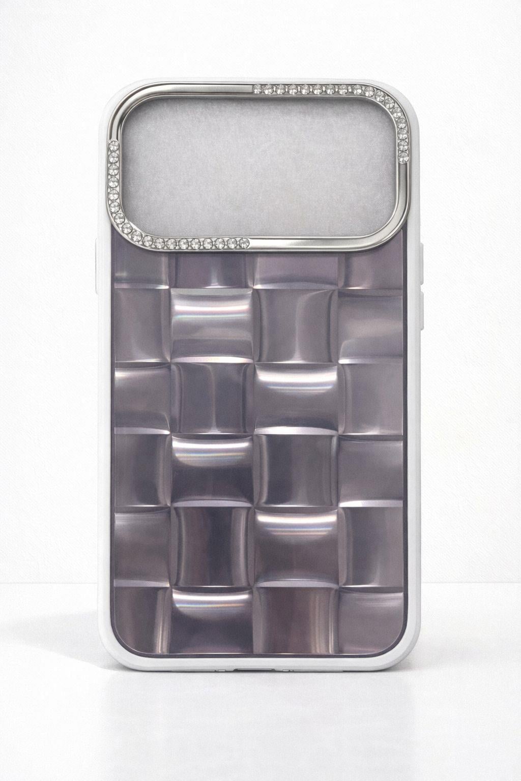 iPhone 17 Pro Uyumlu 3D Kare Desenli Parlak Kılıf Antrasit