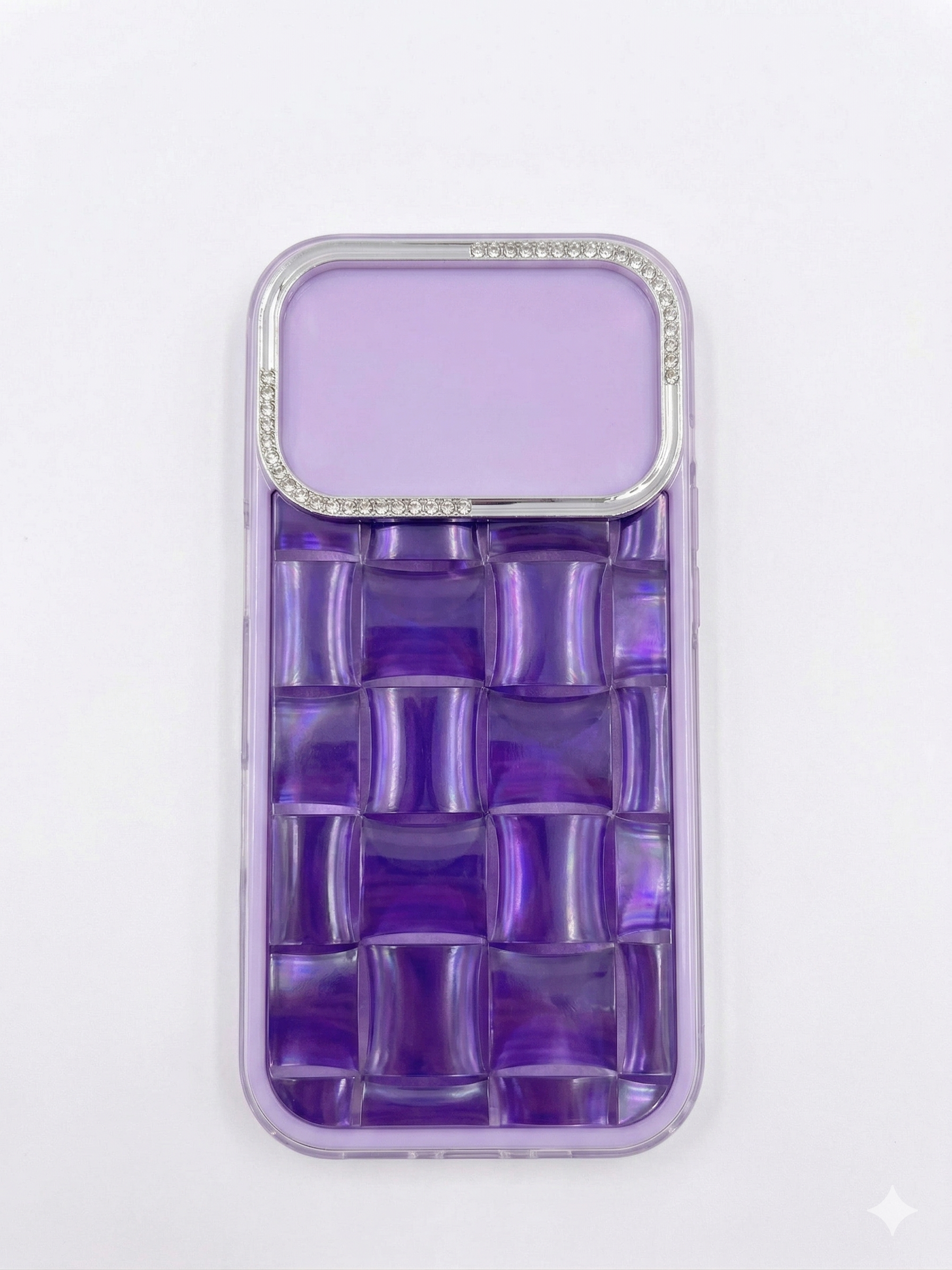 iPhone 17 Pro Uyumlu 3D Kare Desenli Parlak Kılıf Mor