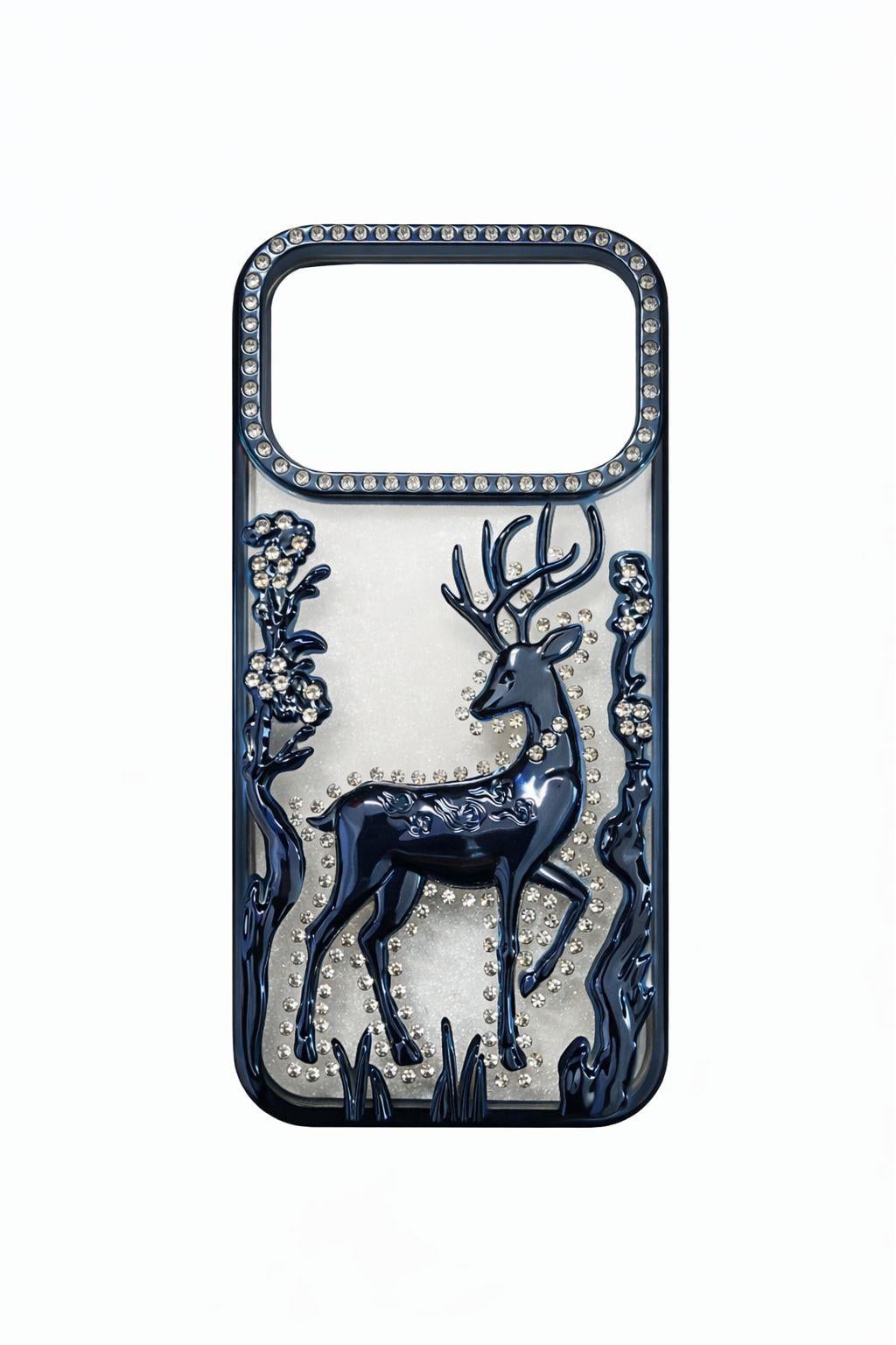 İphone 17 Pro Uyumlu Geyik ve Çiçek Kabartmalı Kılıf Lacivert (300669KLFXLACİ)
