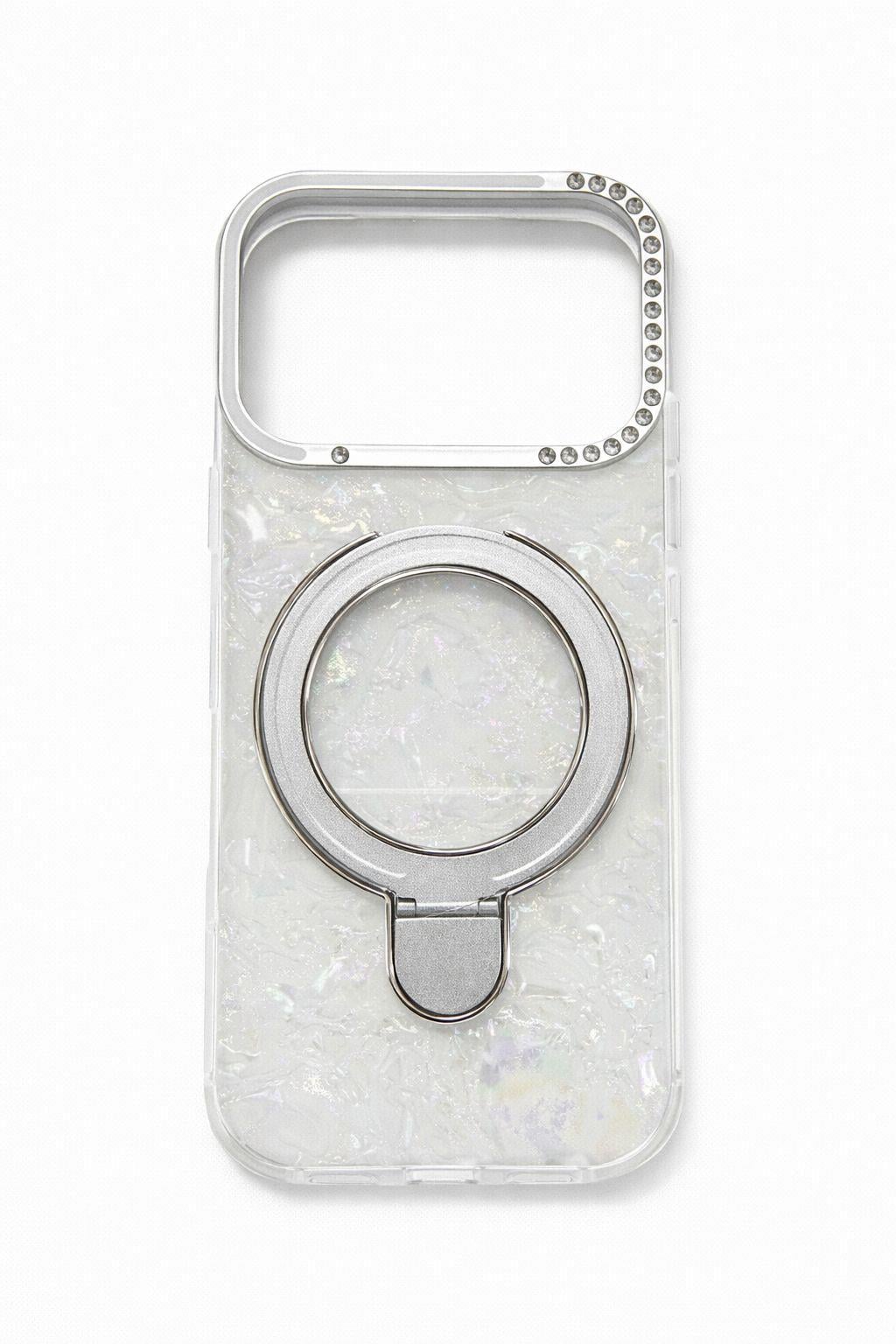 İphone 17 Pro Uyumlu Magsafe Dönebilen Halkalı Kılıf Beyaz