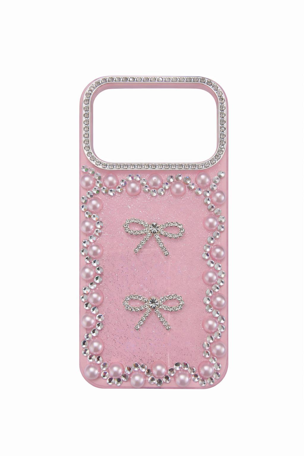 İphone 17 Pro Uyumlu Taş Detaylı Telefon Kılıfı Pembe