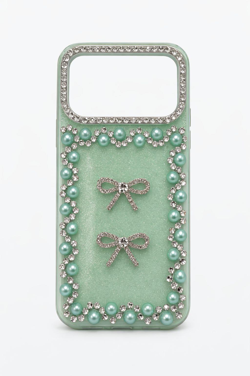 İphone 17 Pro Uyumlu Taş Detaylı Telefon Kılıfı Yeşil (300668KLFXYSL)