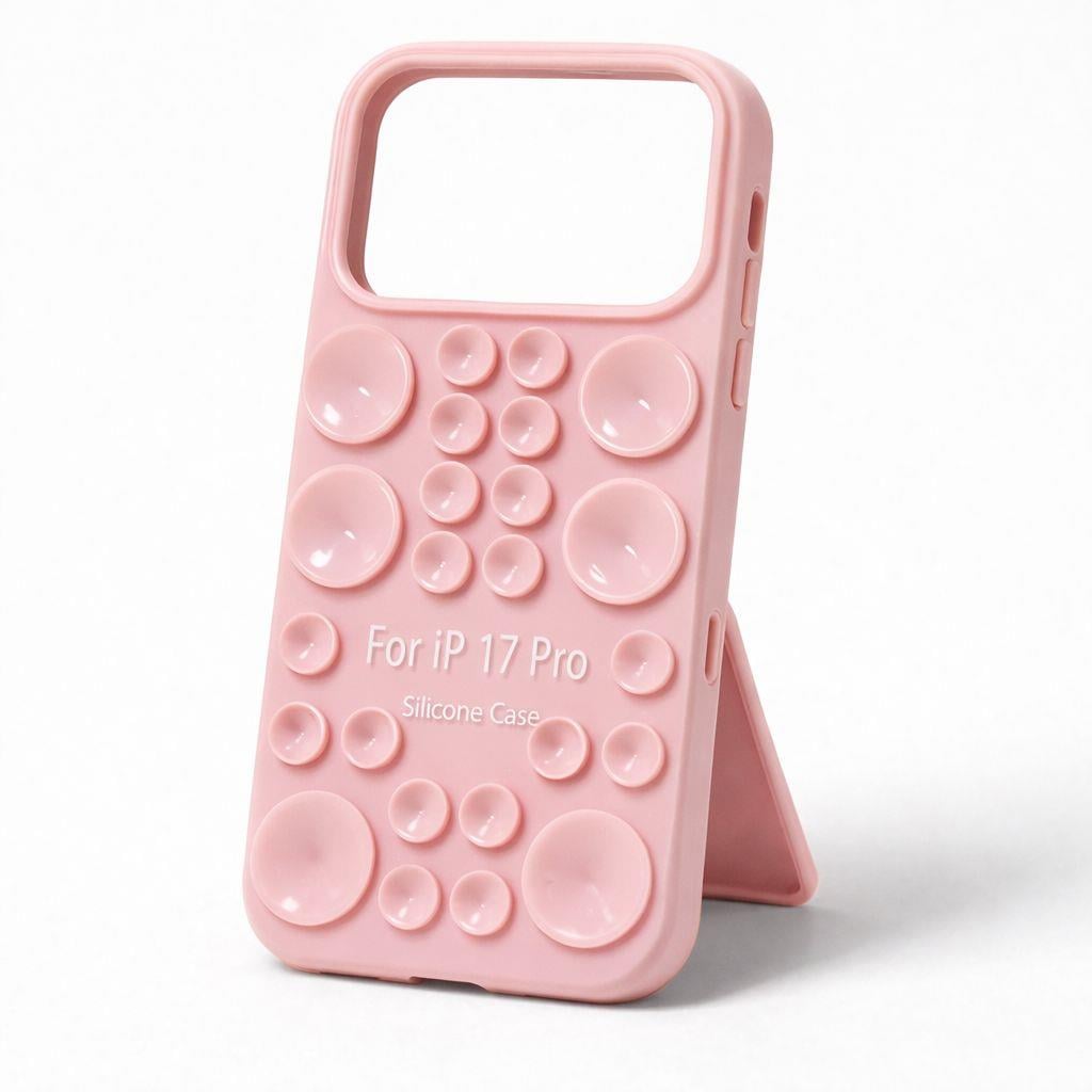 İphone 17 Pro Uyumlu Vantuzlu ve Pop-it Özellikli Kılıf Pembe