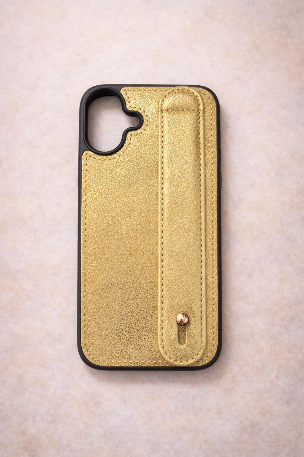 İphone 17 Uyumlu Charmlı ve Harfli Deri Kılıf Gold