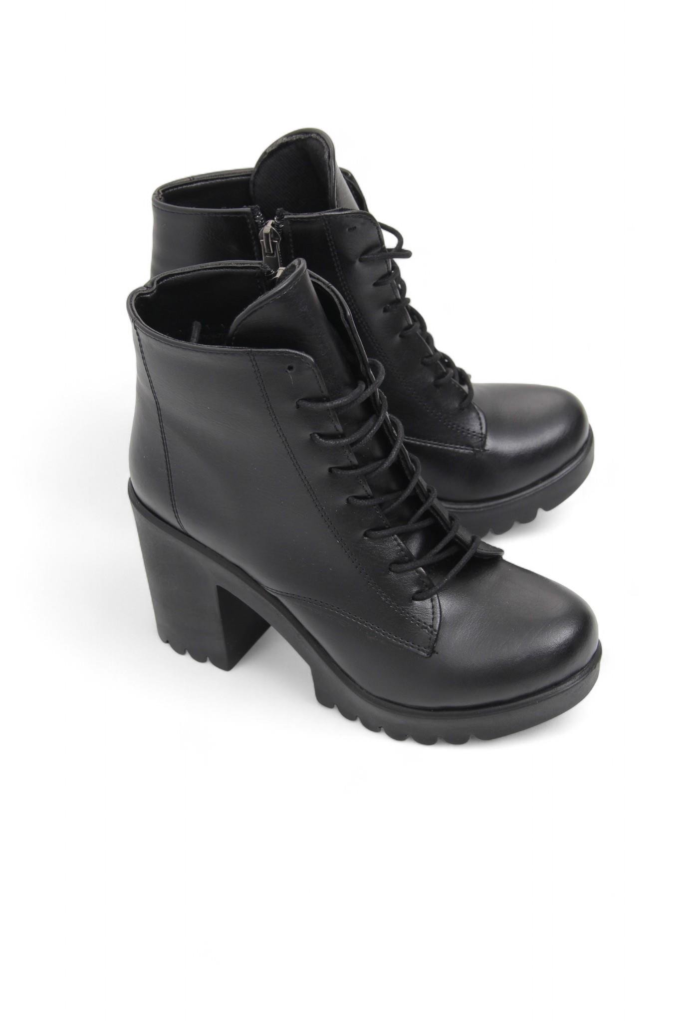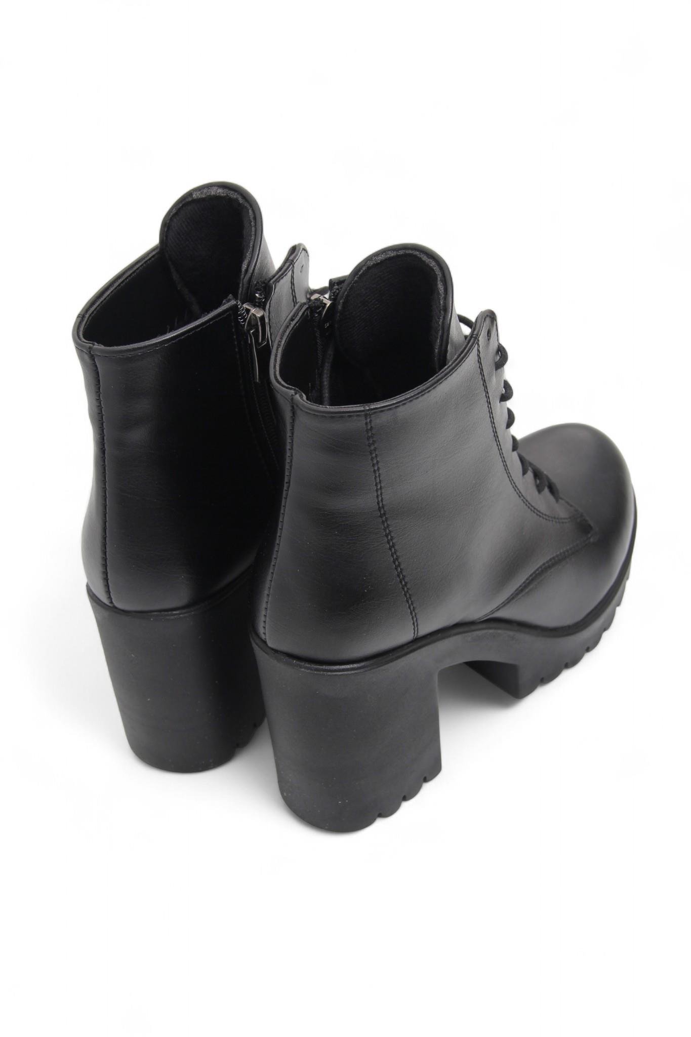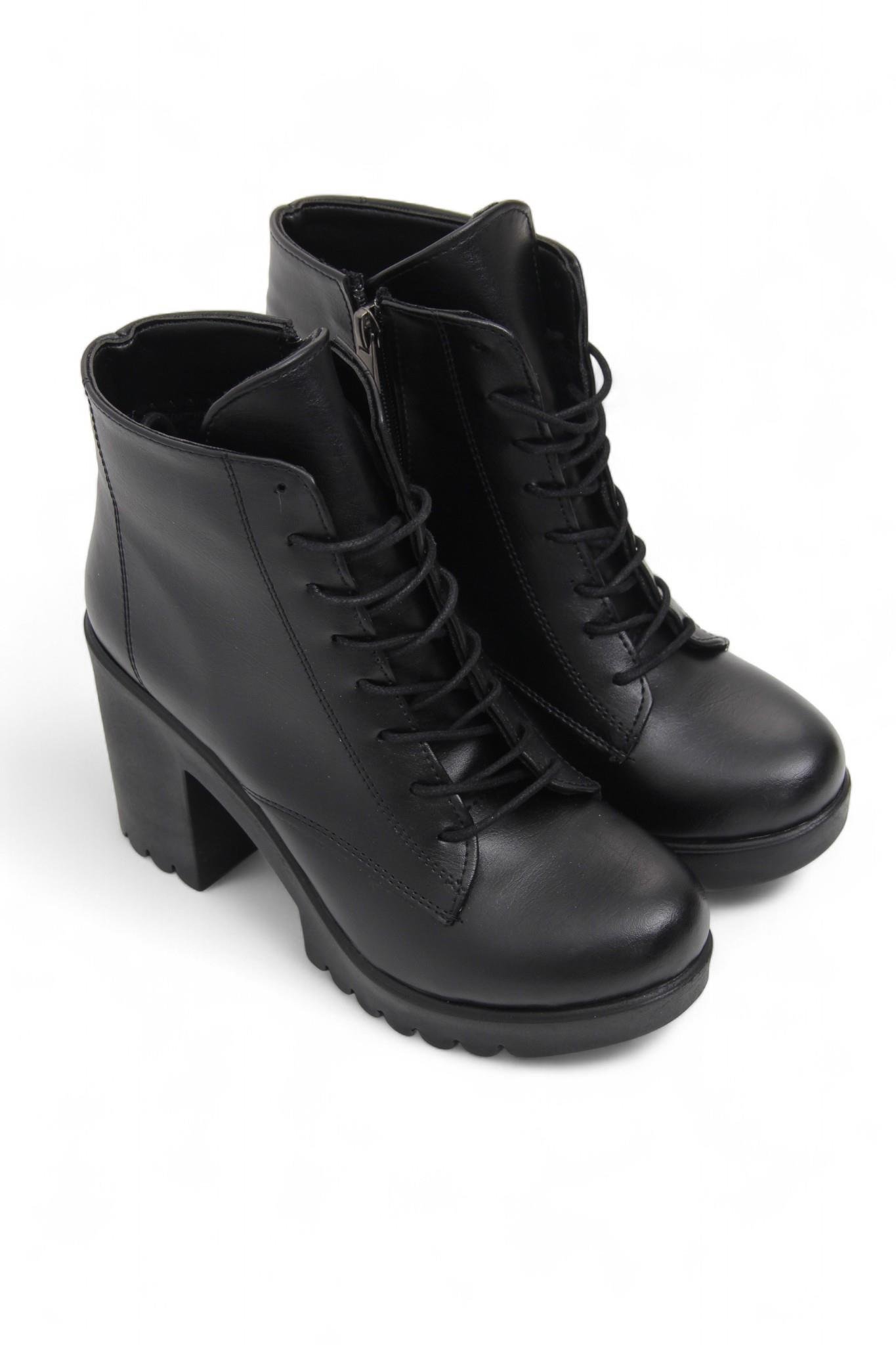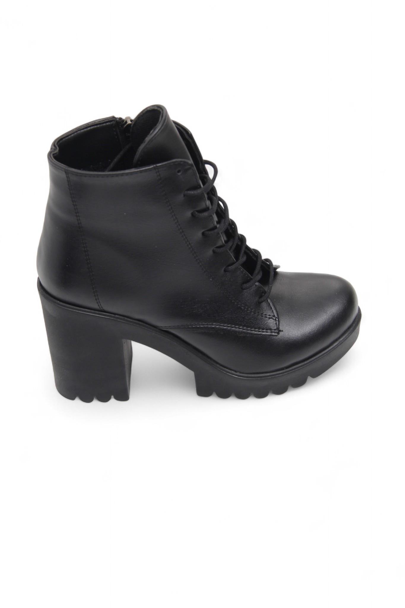 Kadın Bağcıklı Kalın Taban Fermuarlı Siyah Bot