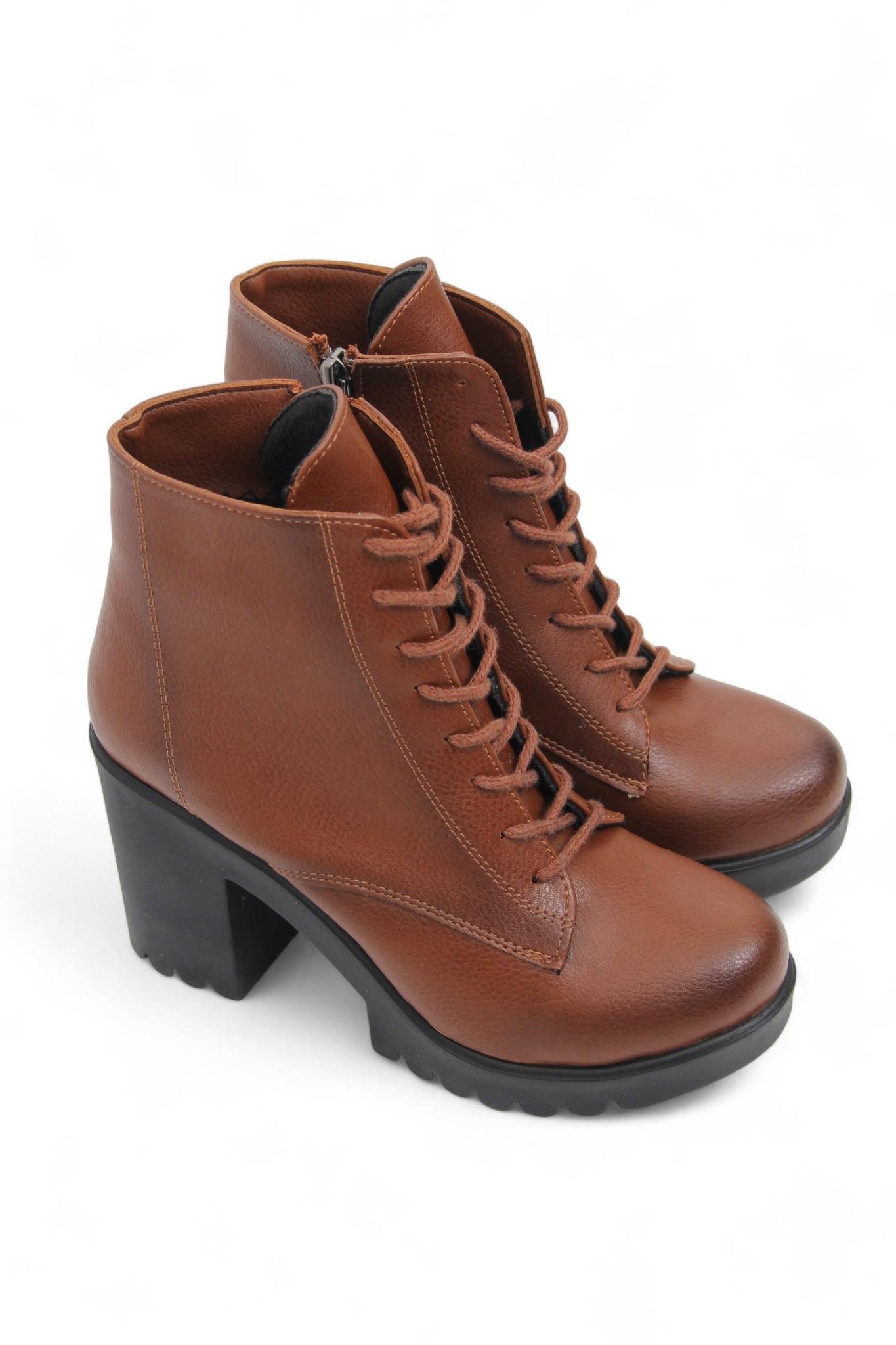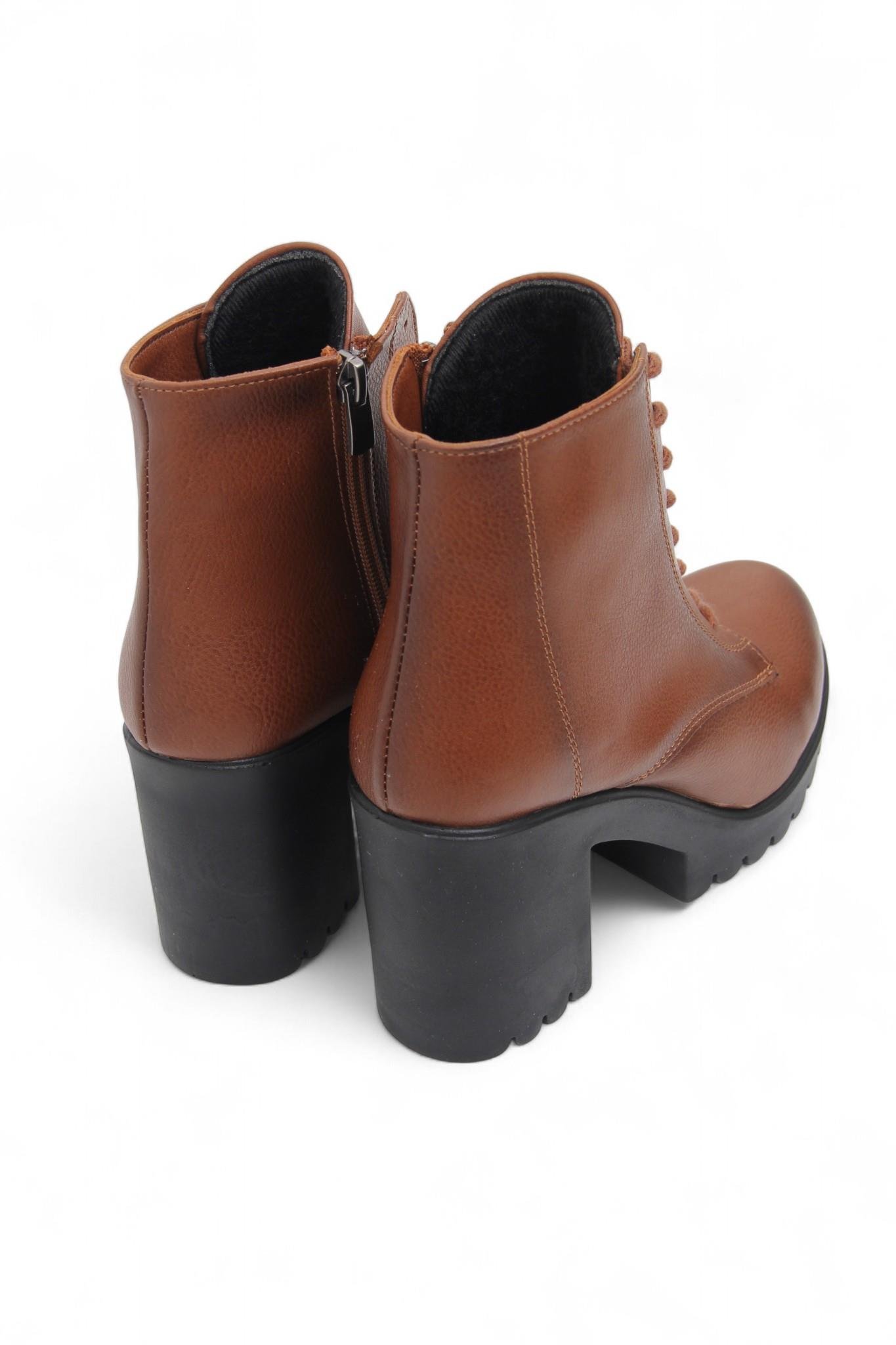 Kadın Bağcıklı Kalın Taban Fermuarlı Taba Bot (252414AYKXTBA)