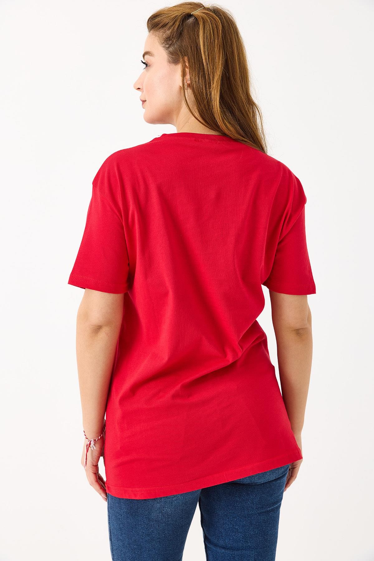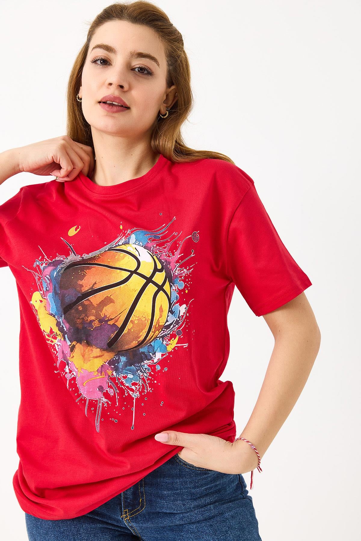 Kadın Basketbol Grafik Baskılı Günlük Tshirt  Kırmızı