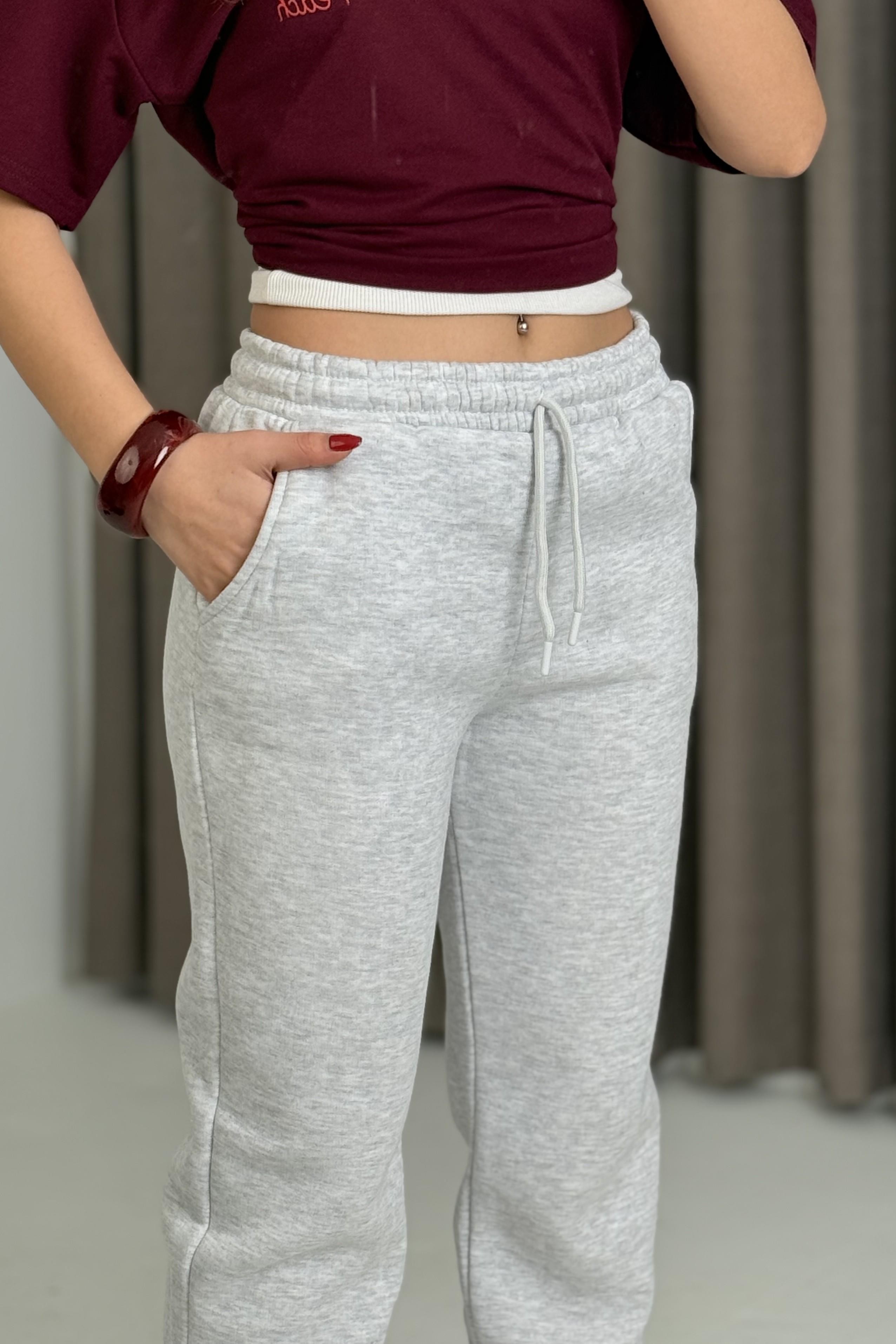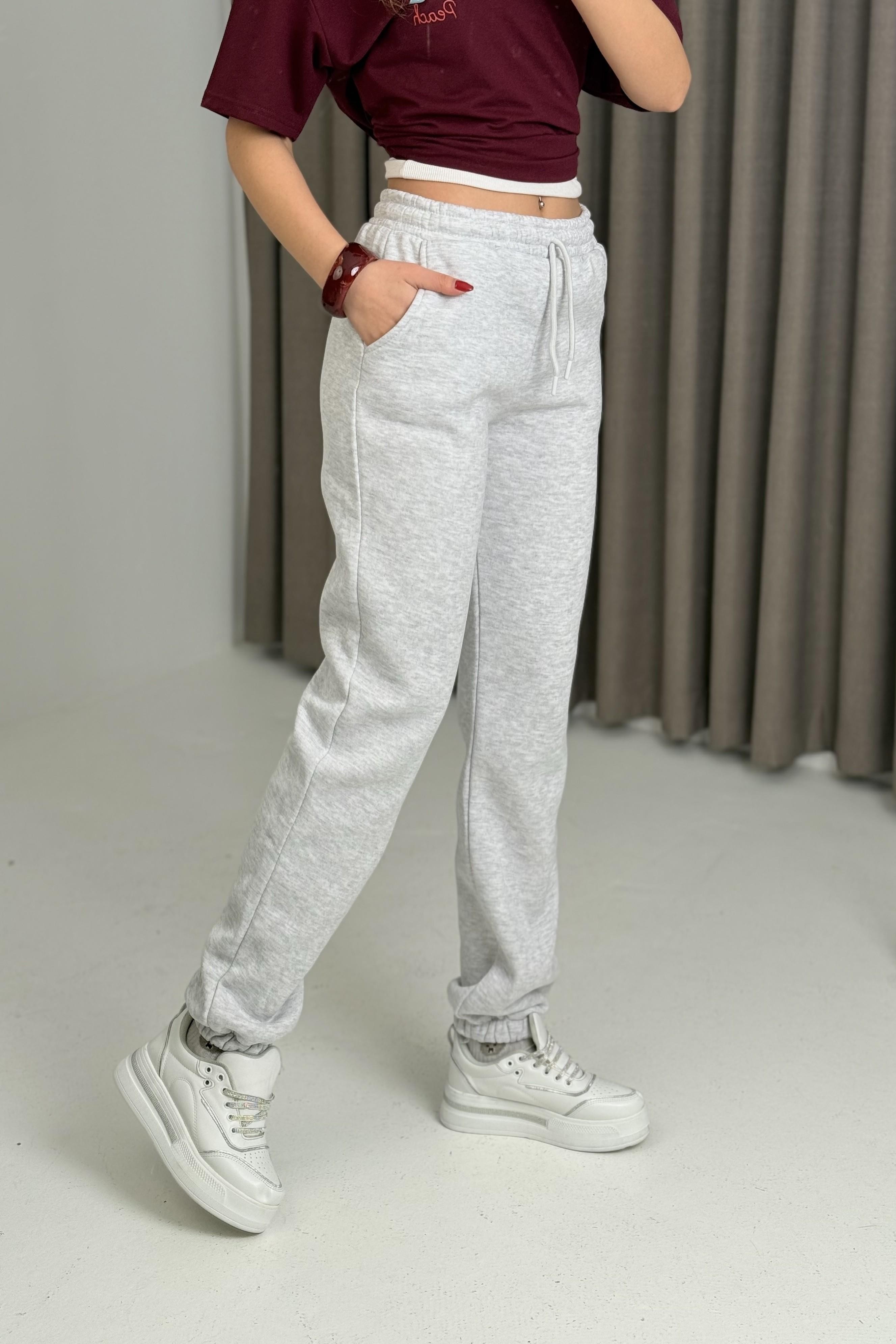 Kadın Beli Ve Paçası Lastikli 3 İplik Eşofman Altı Gri (255037ESFXGRİ)