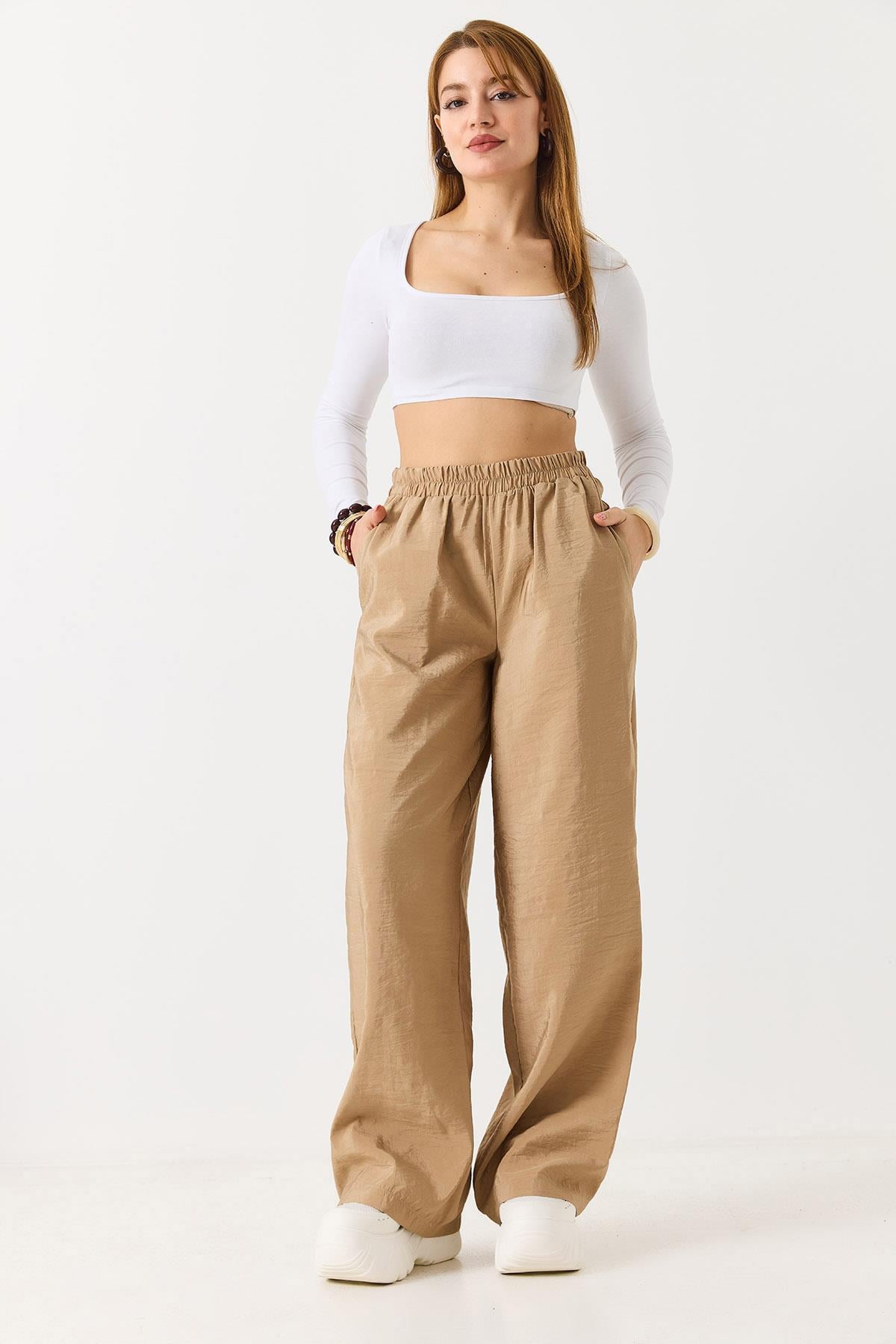 Kadın Bol Kesim Tensel Kumaş Beli Lastikli Sütlü Kahve (600312PNTXSKHV)