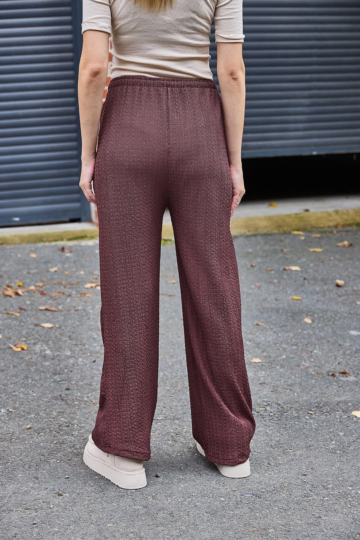 Kadın Bürümcük Salaş Dökümlü Pantalon Kahverengi