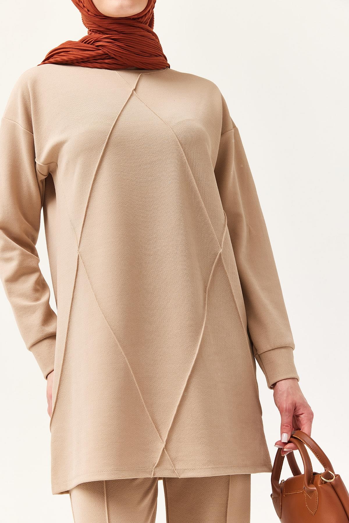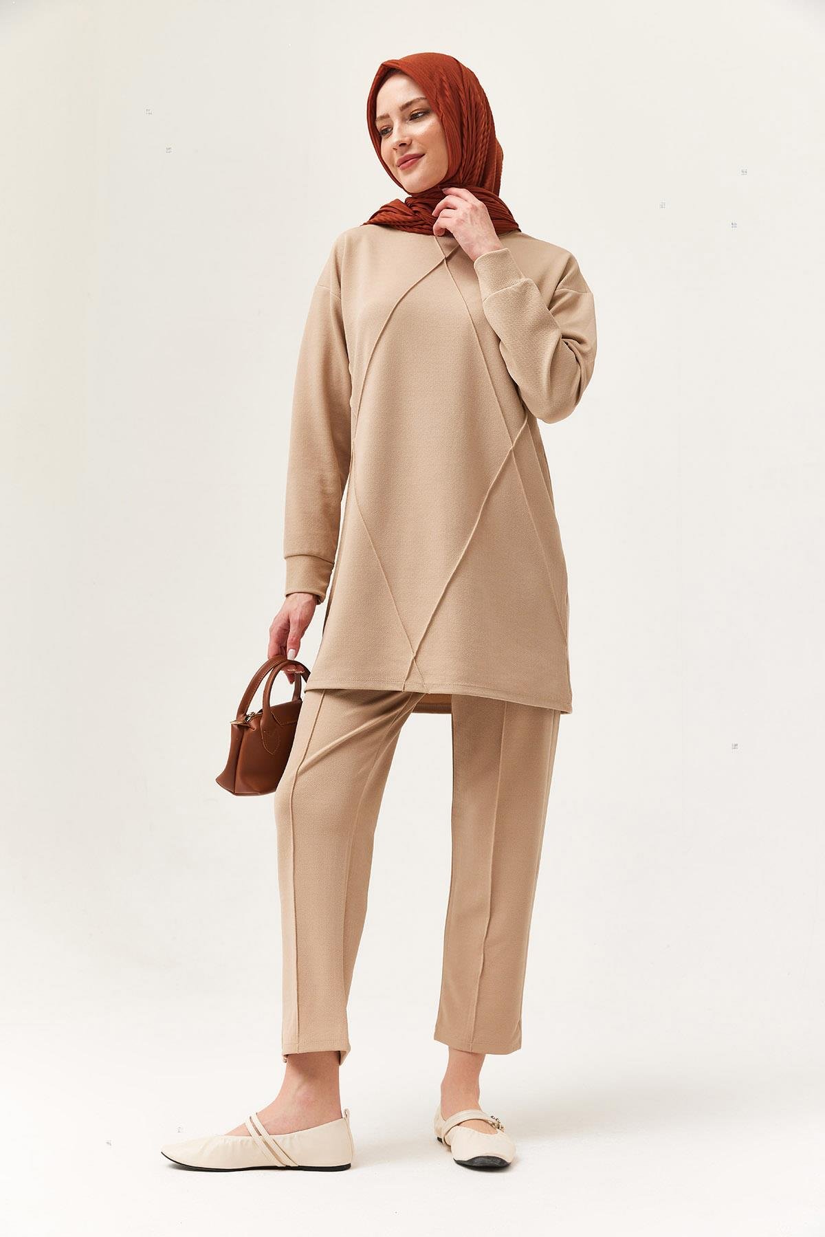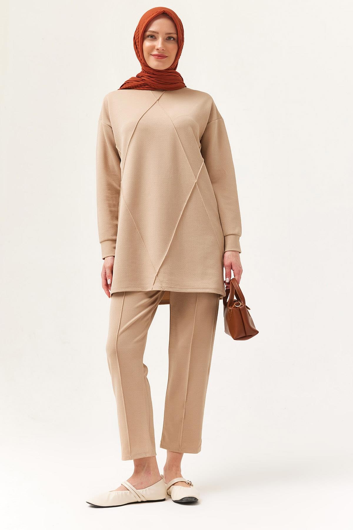 Kadın Çapraz Çizgili İkili Takım Bej (250391TKMXBEJ)