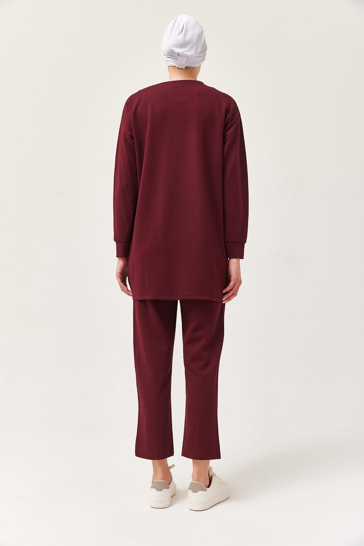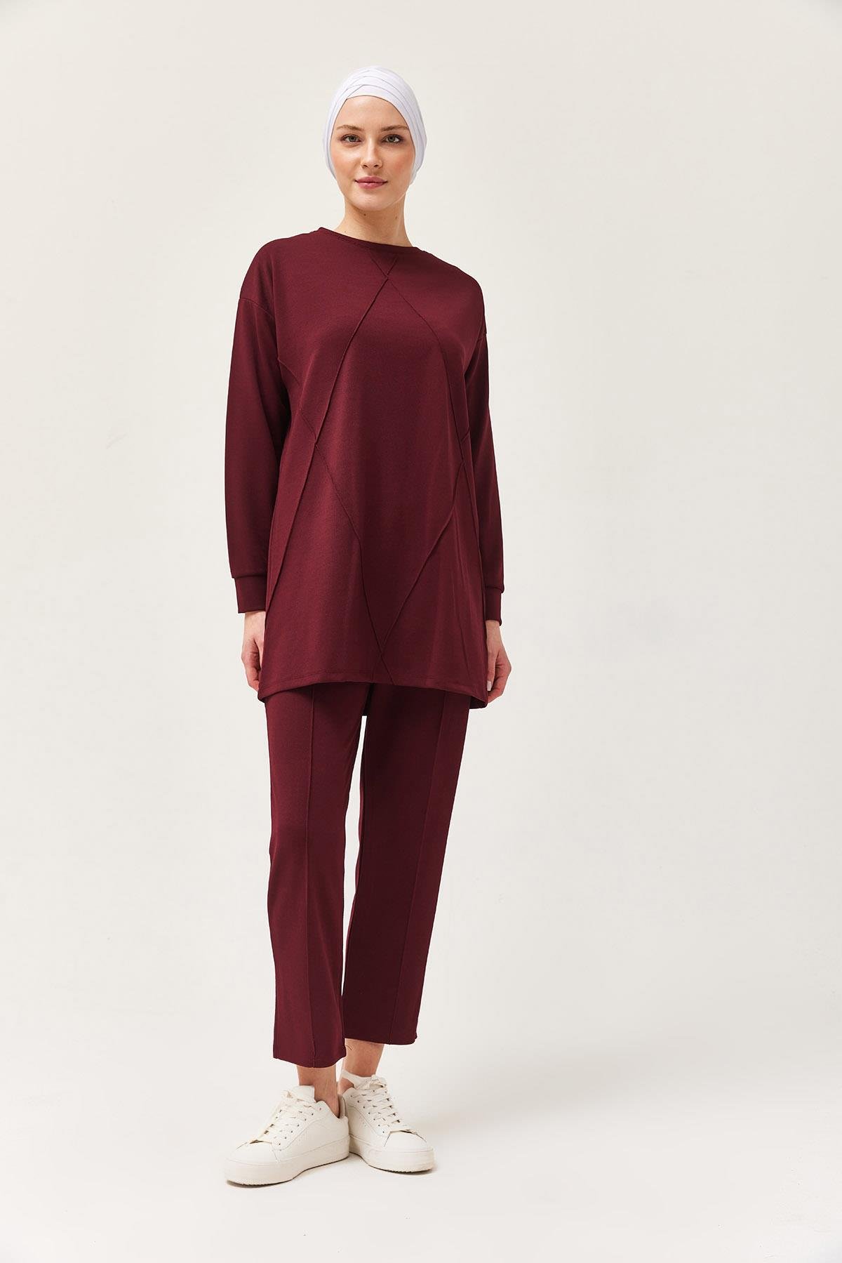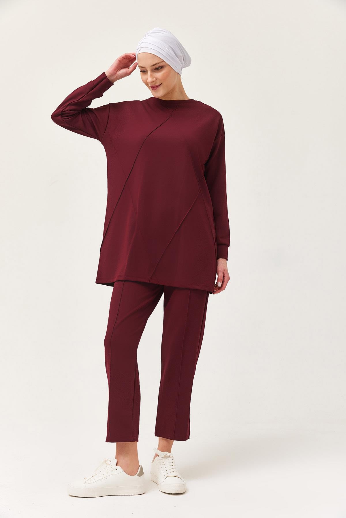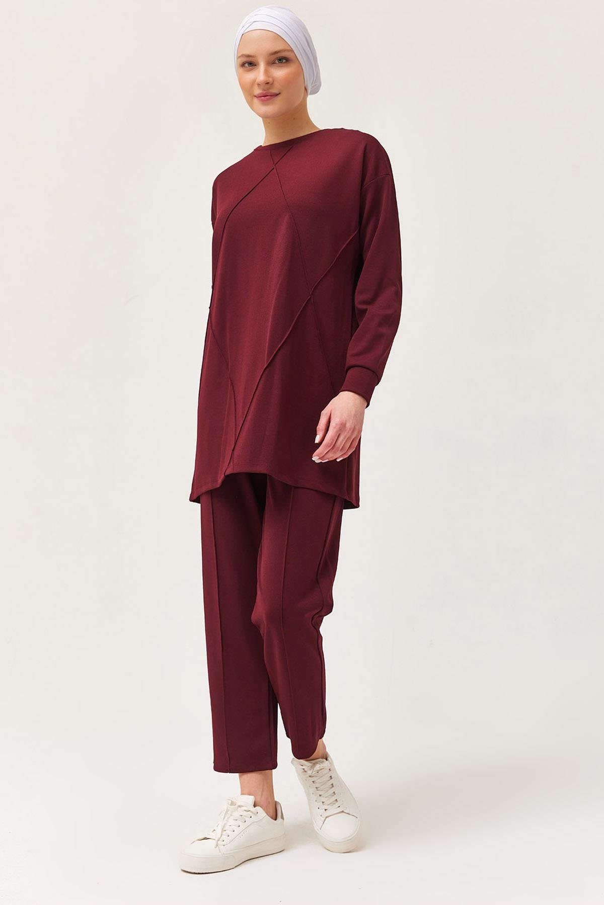Kadın Çapraz Çizgili İkili Takım Bordo