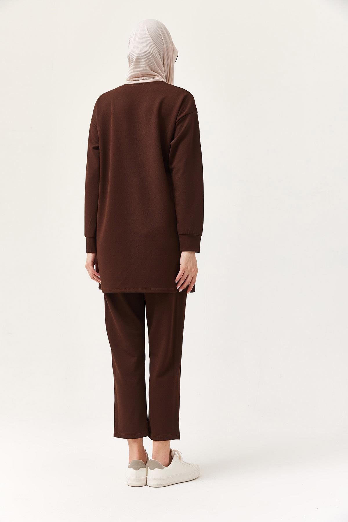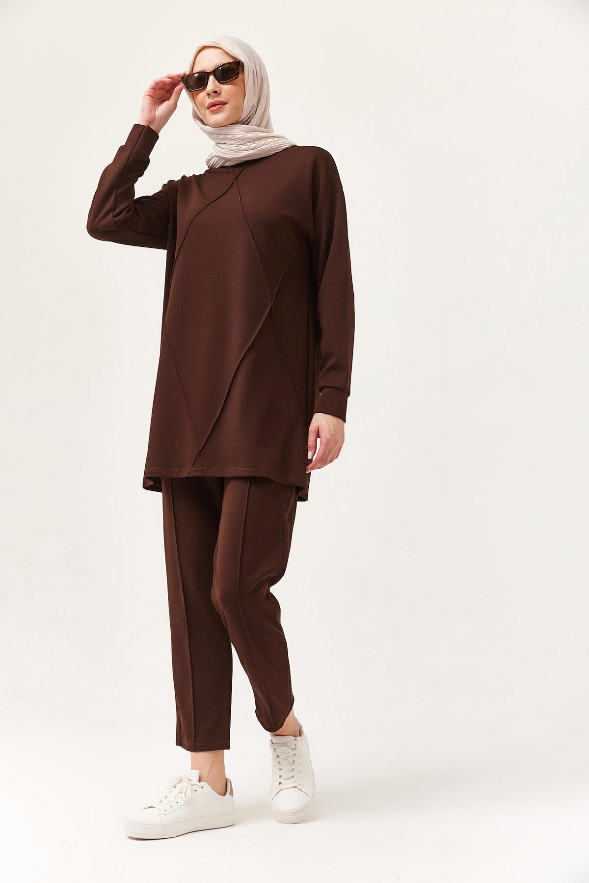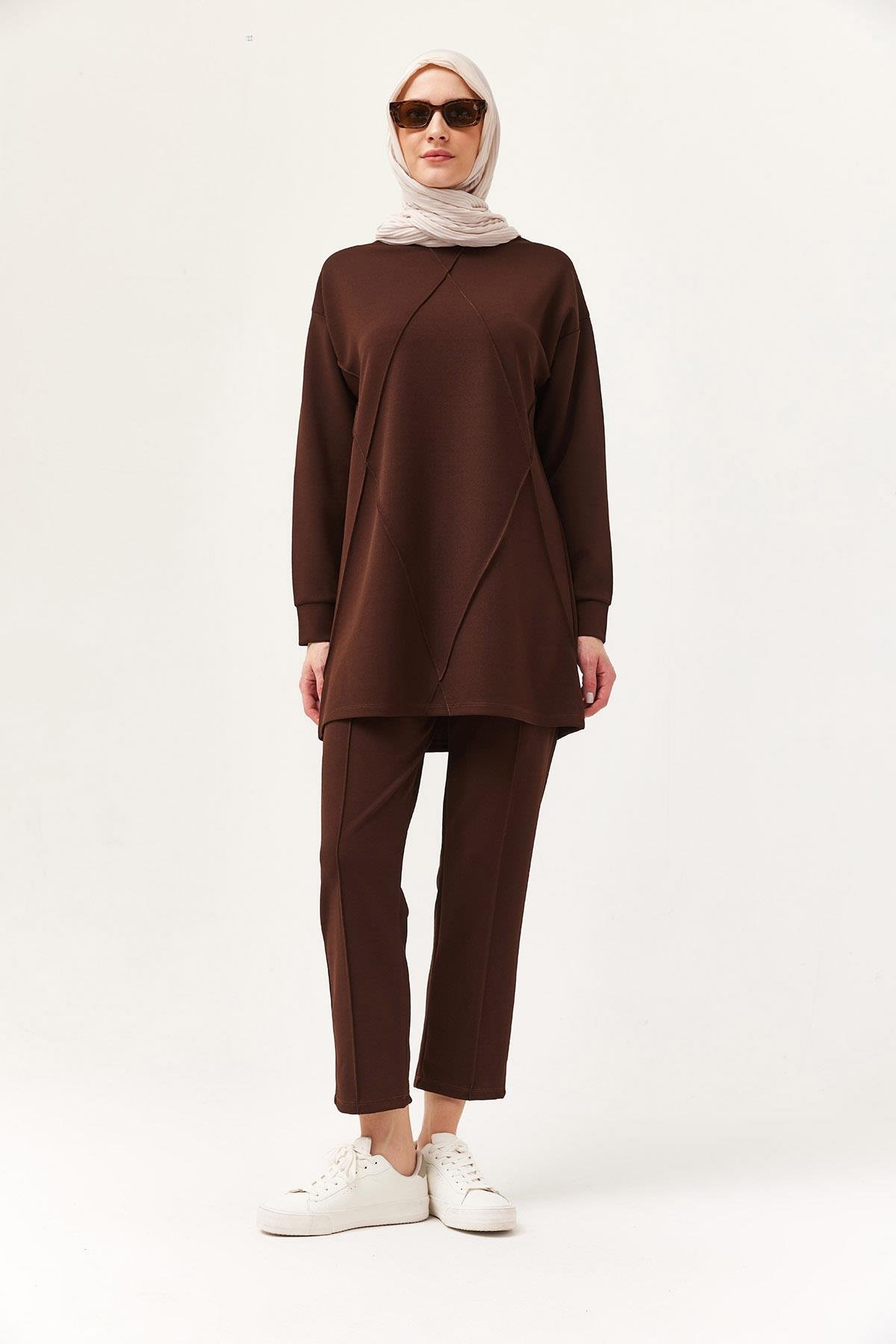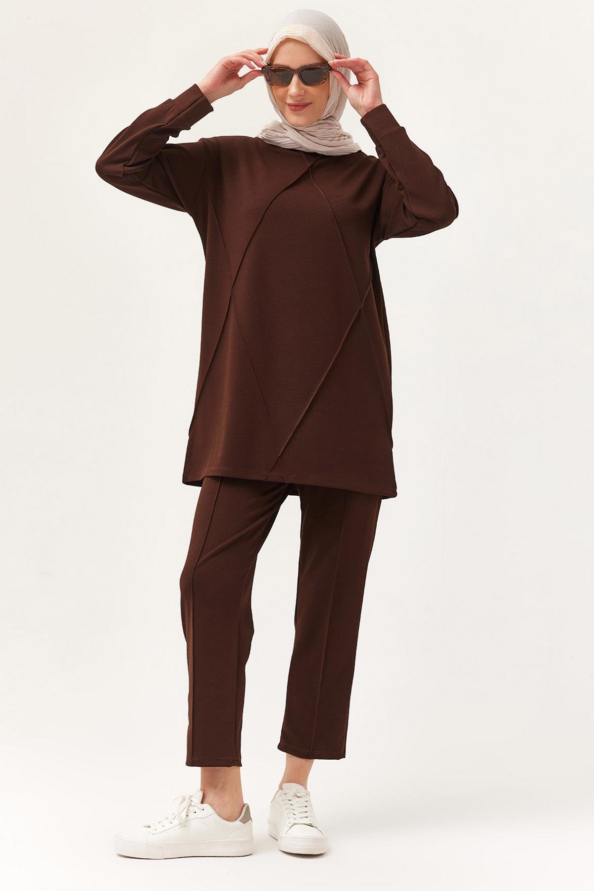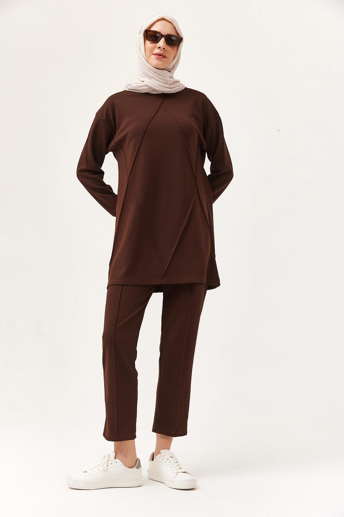 Kadın Çapraz Çizgili İkili Takım Kahve