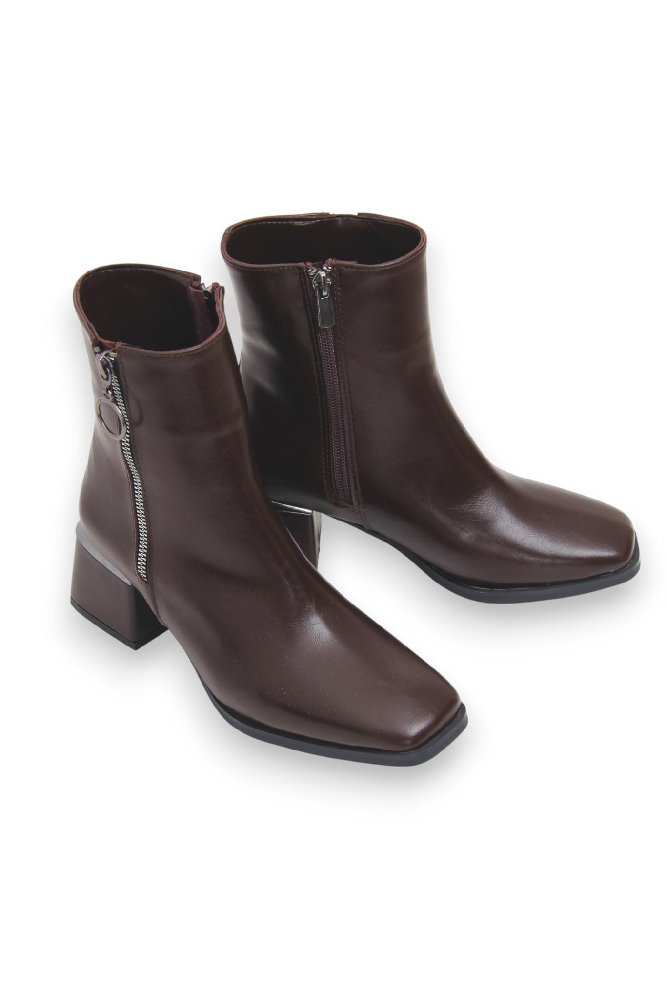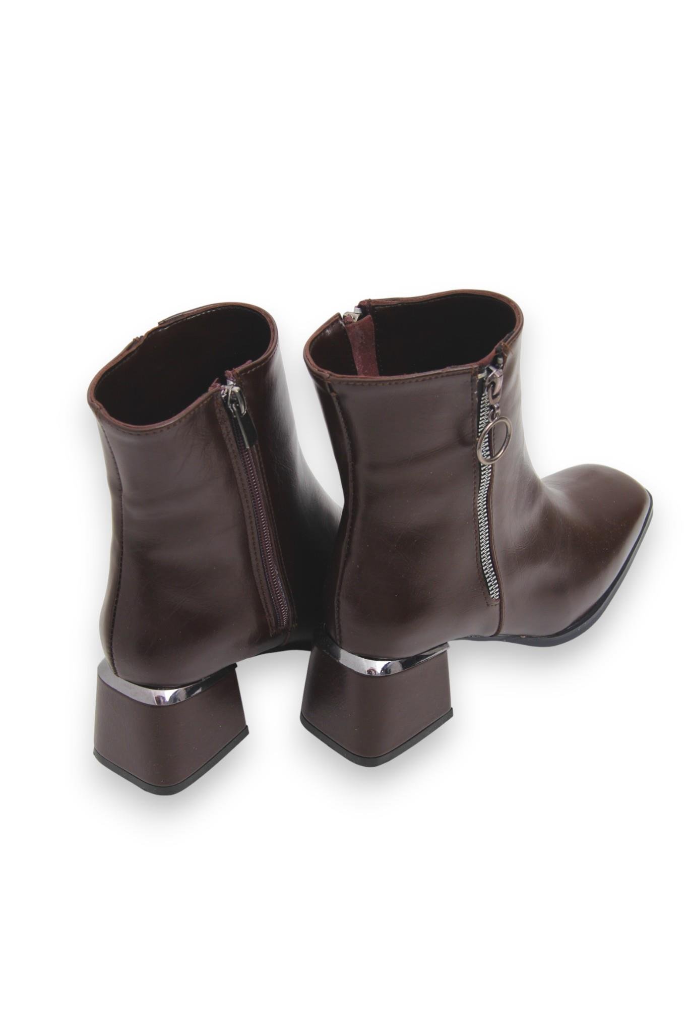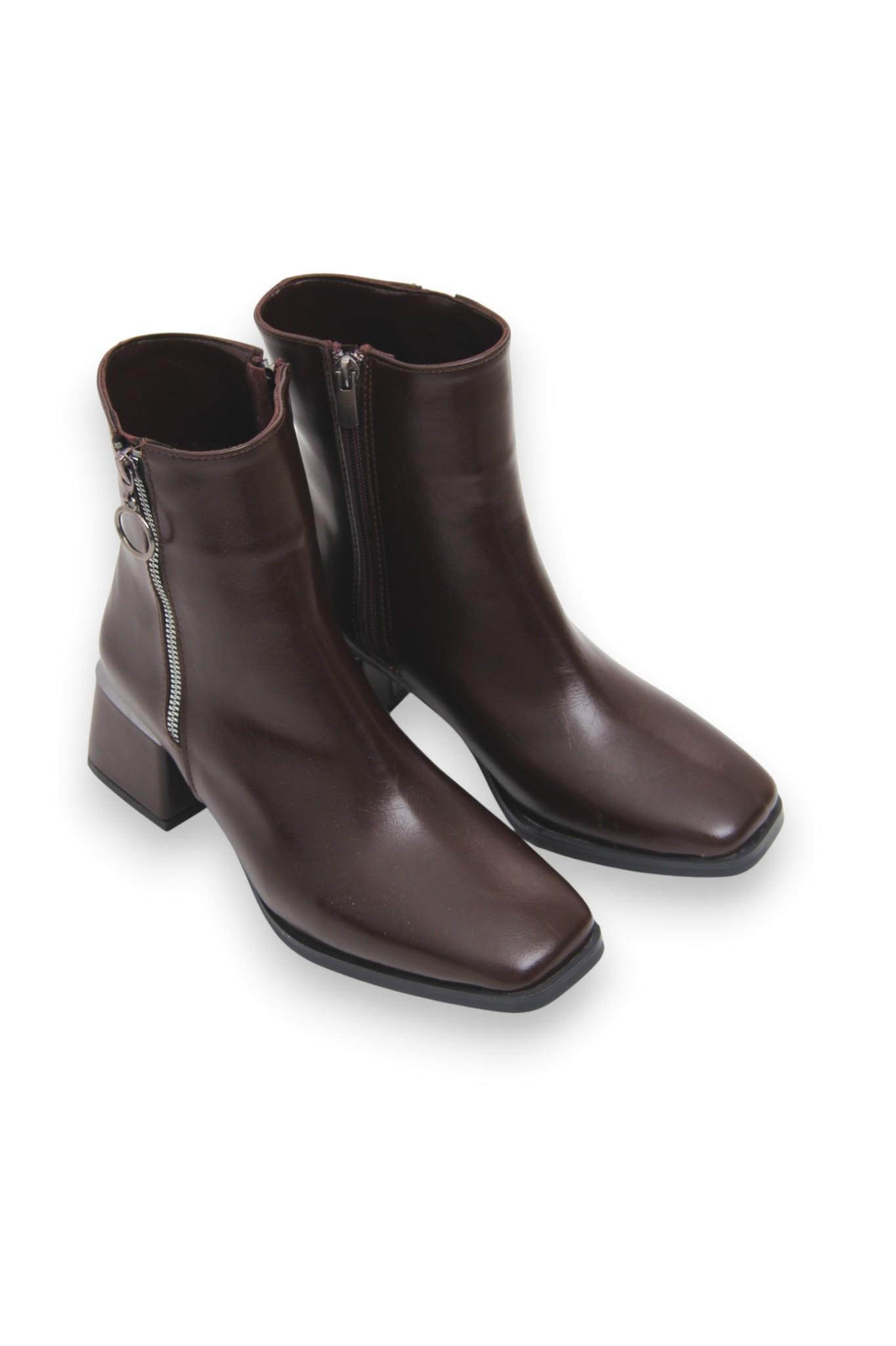 Kadın Çift Fermuarlı Topuk Detaylı Kahverengi Bot