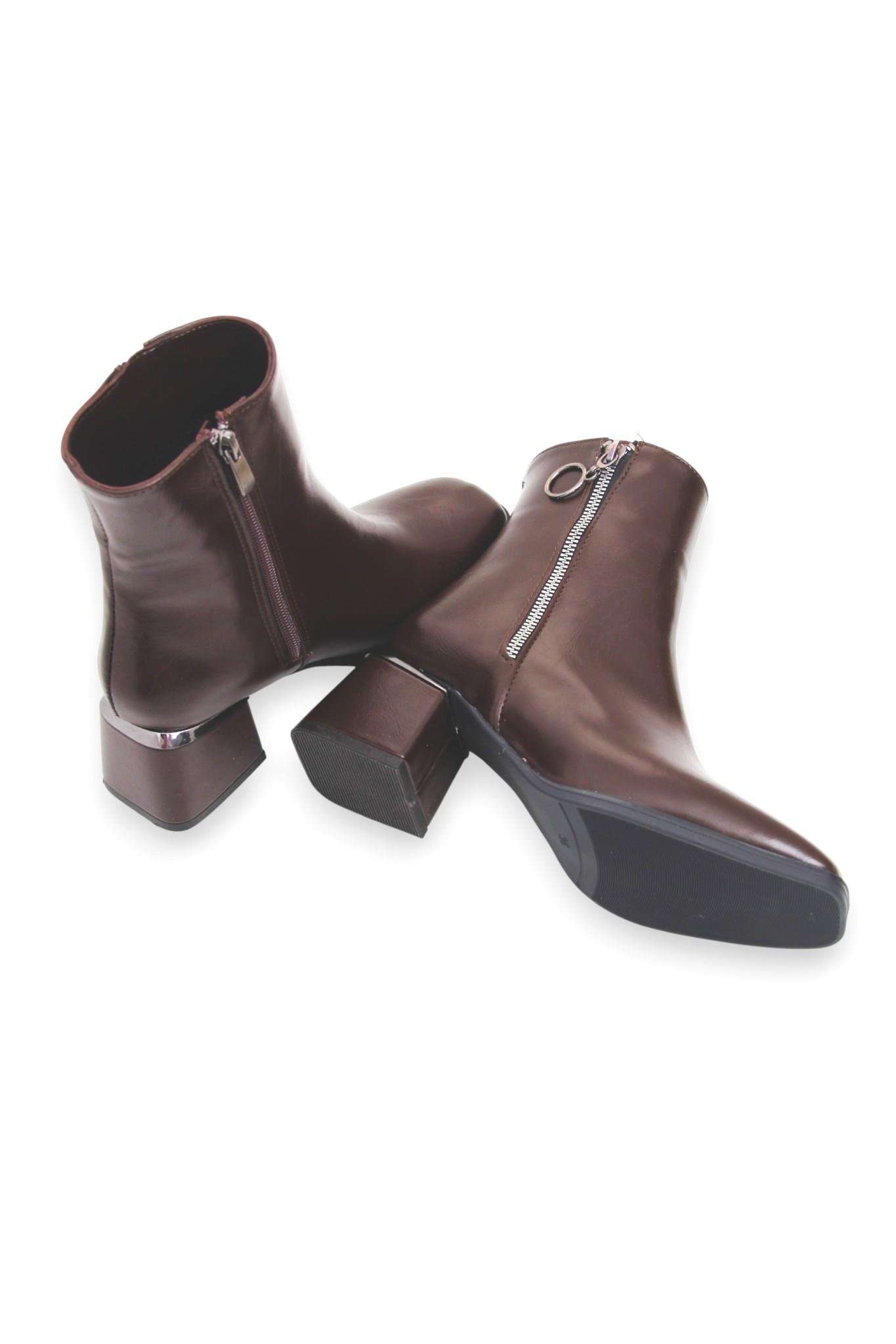 Kadın Çift Fermuarlı Topuk Detaylı Kahverengi Bot (252424AYKXKHV)