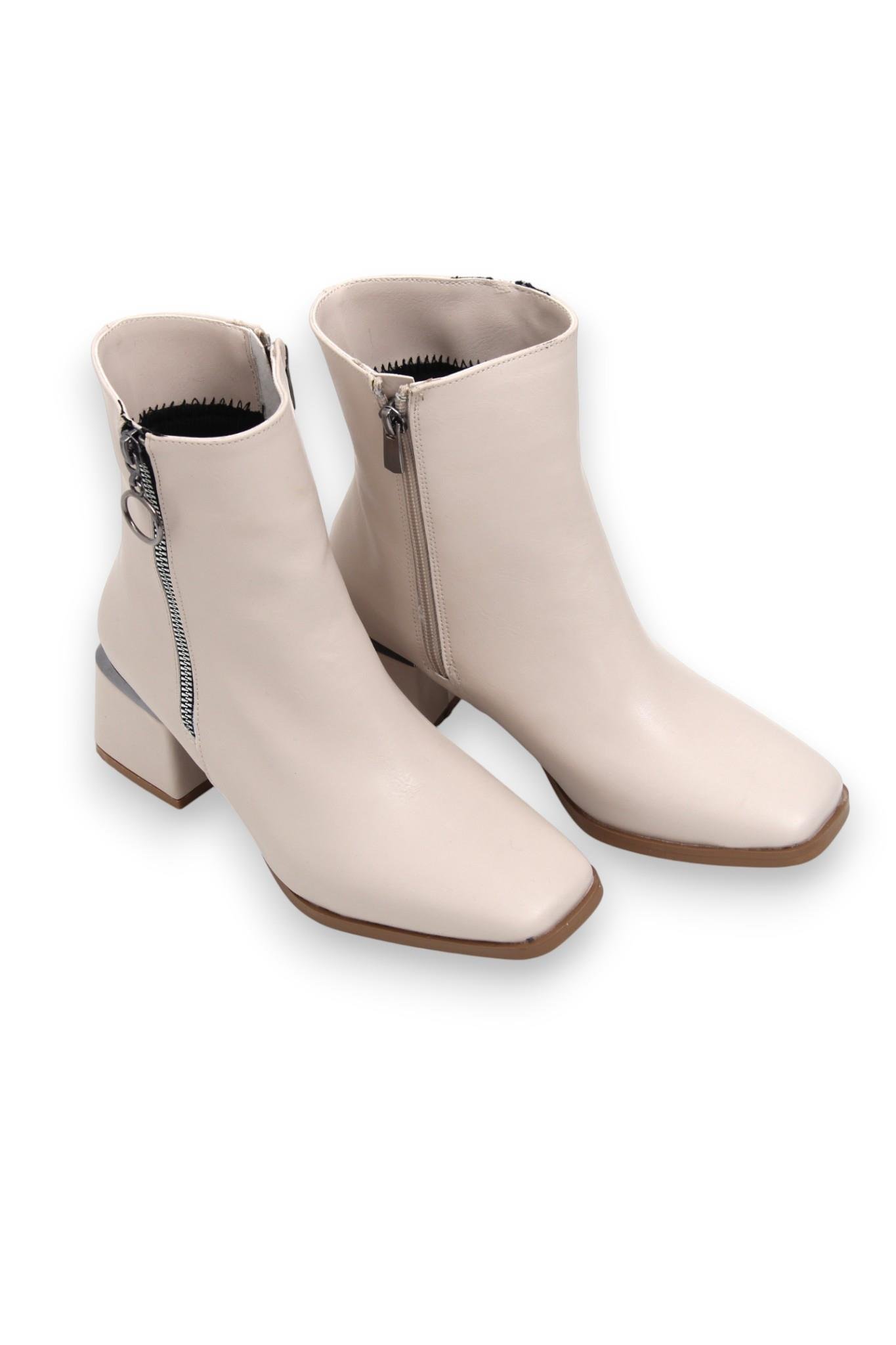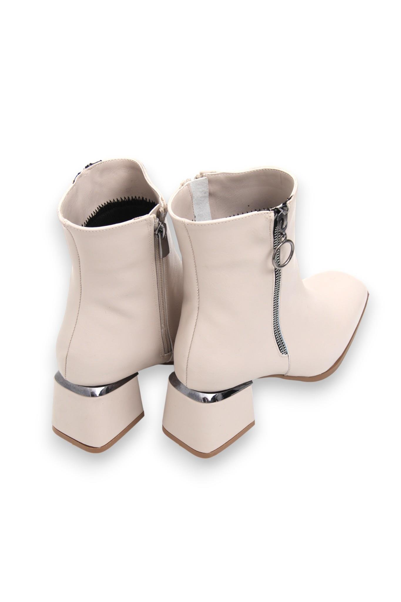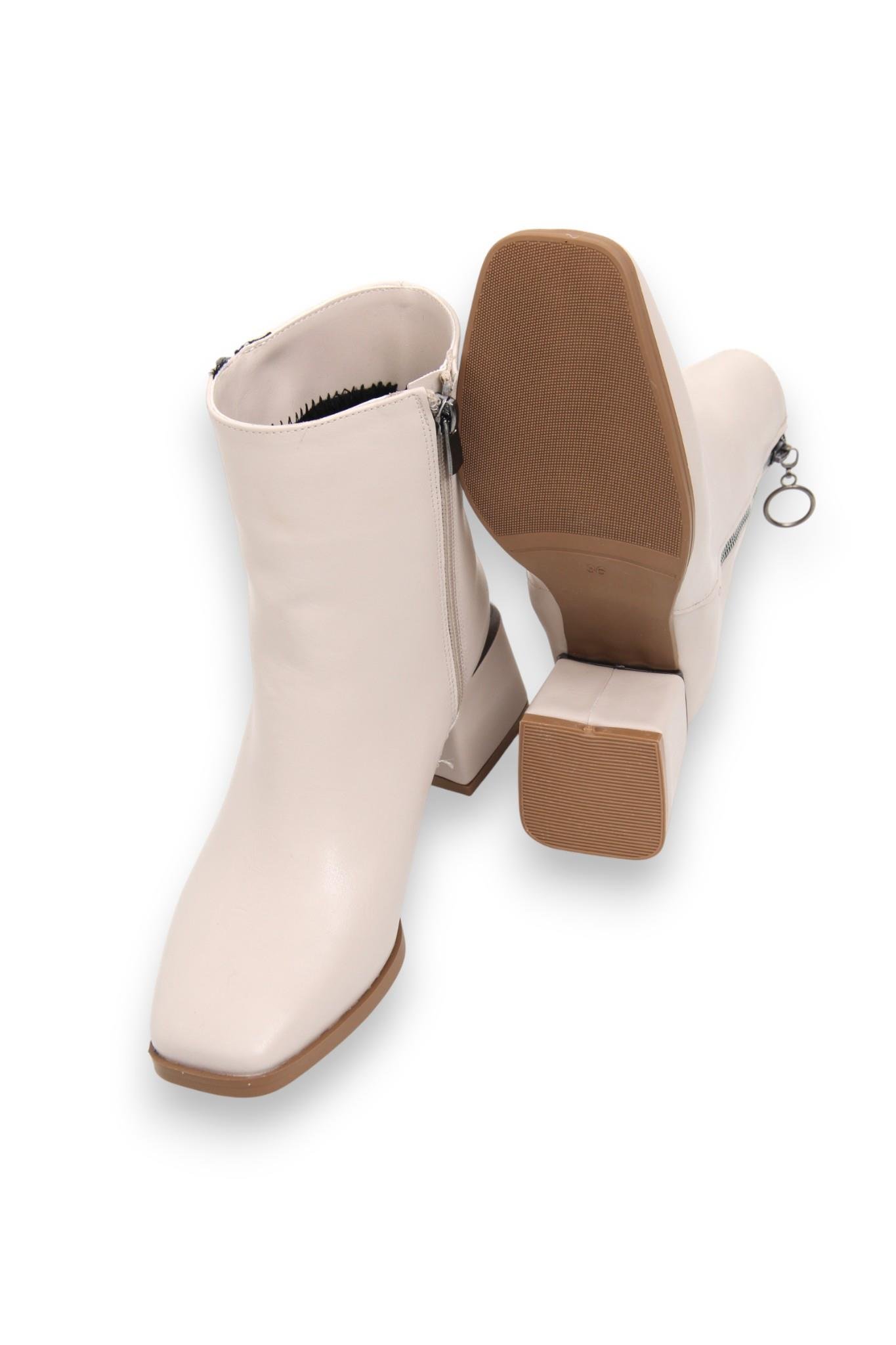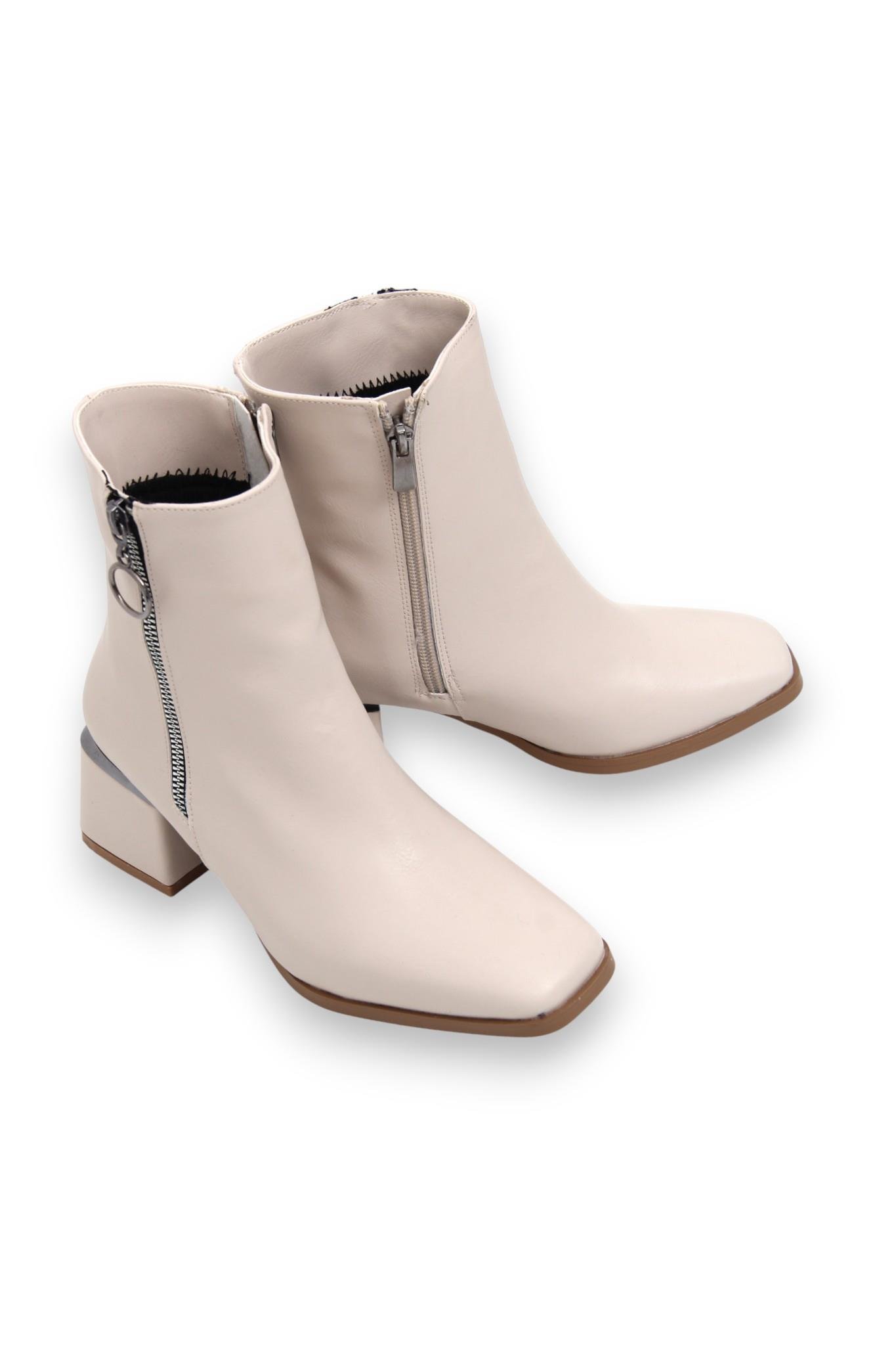 Kadın Çift Fermuarlı Topuk Detaylı Krem Bot