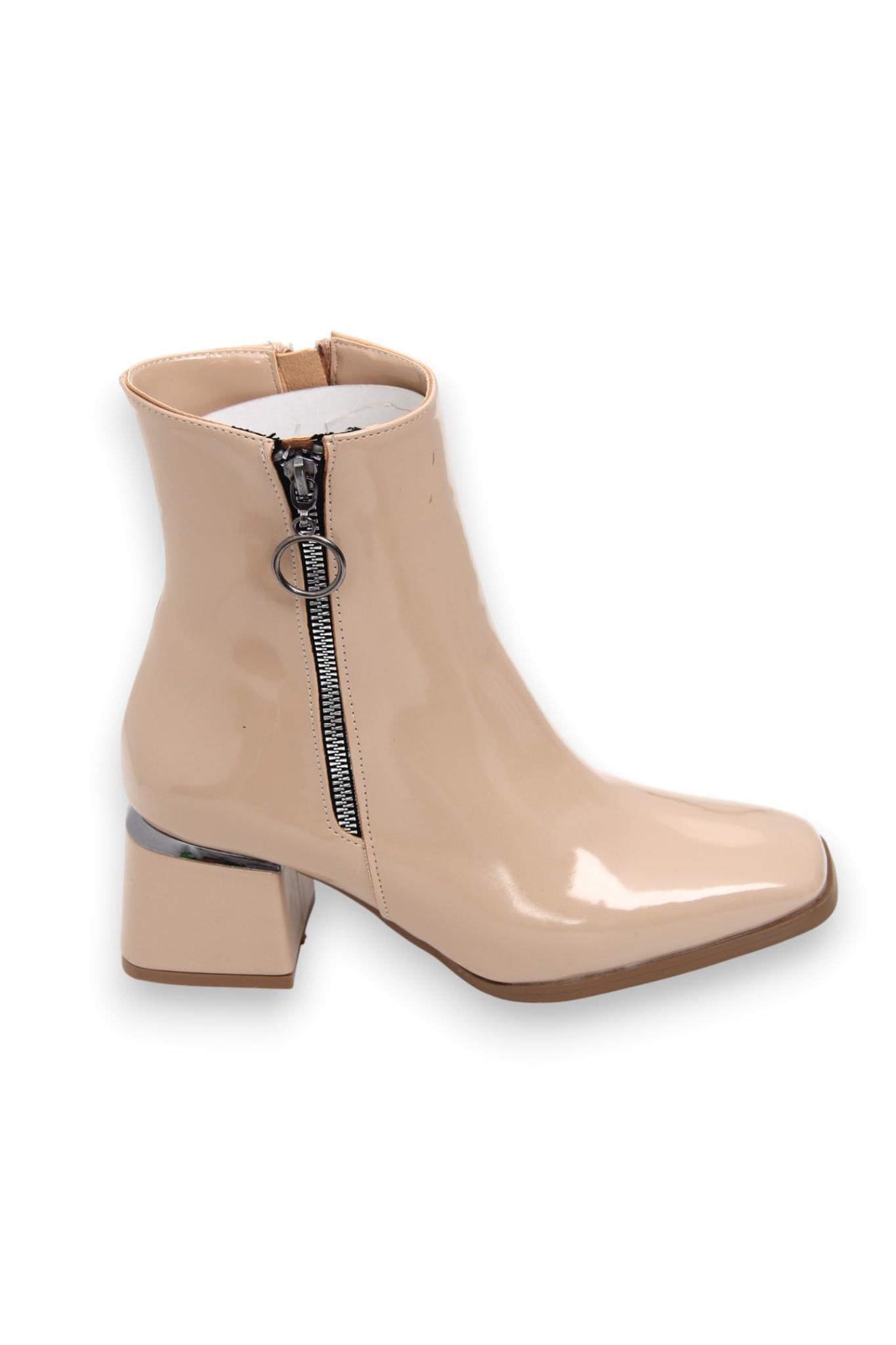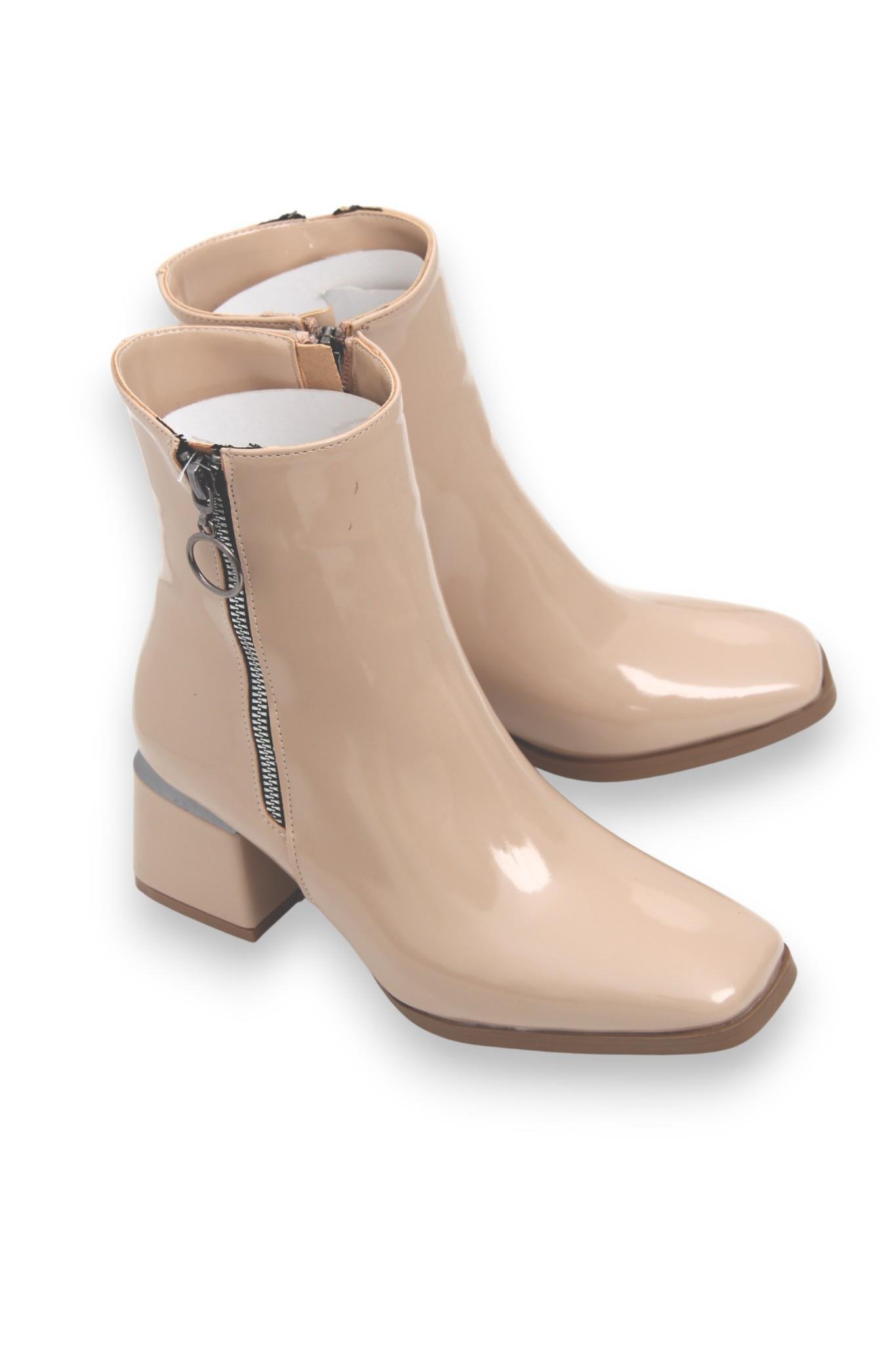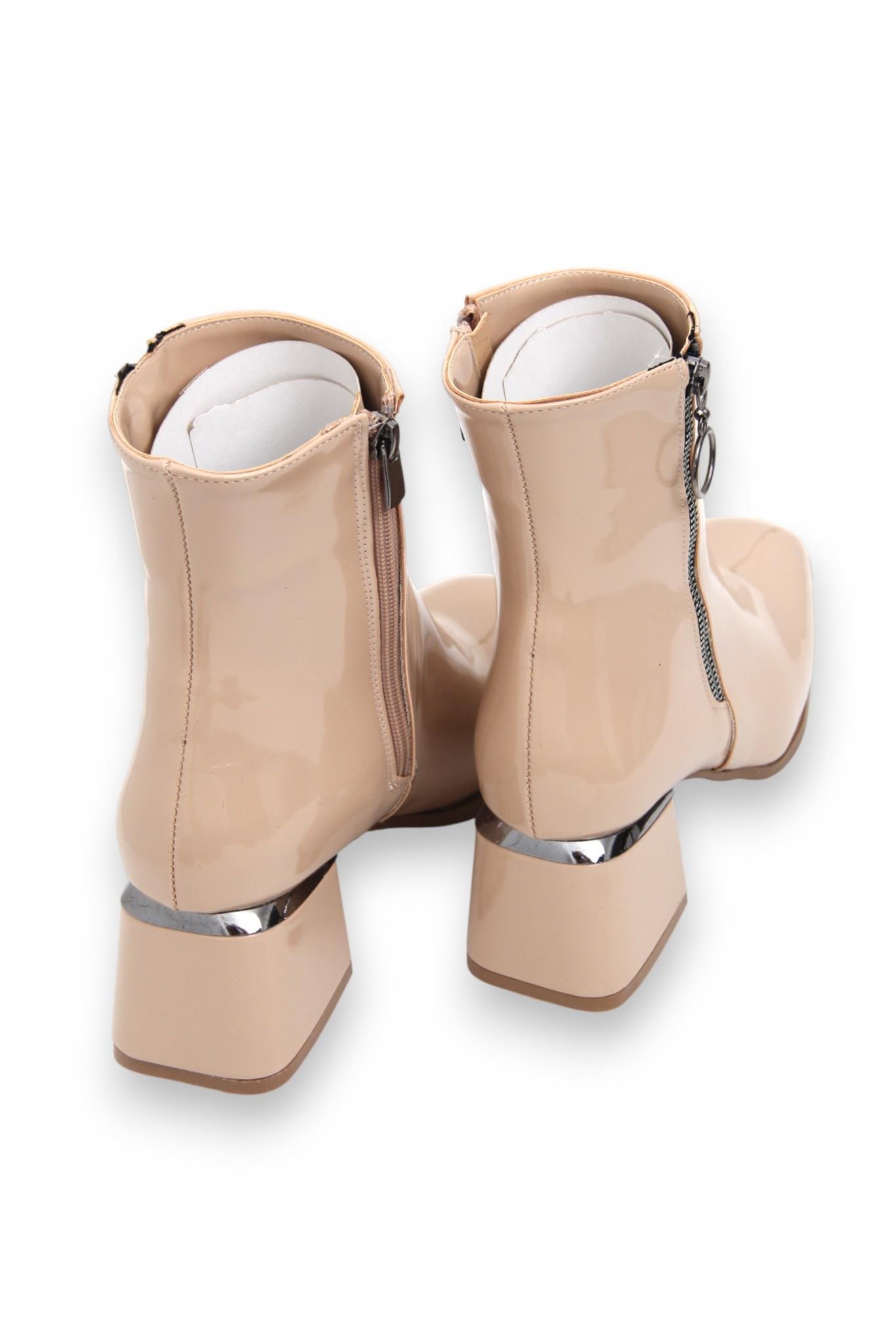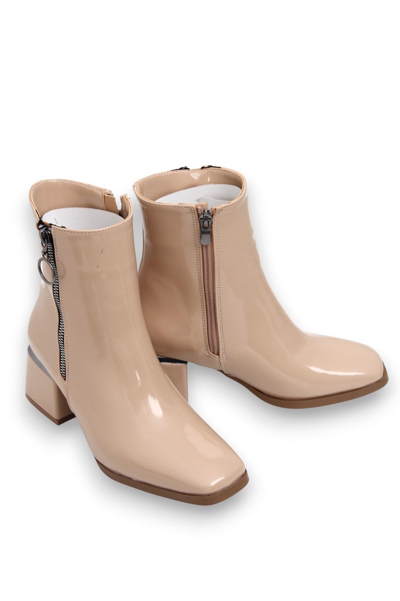 Kadın Çift Fermuarlı Topuk Detaylı Rugan Krem Bot