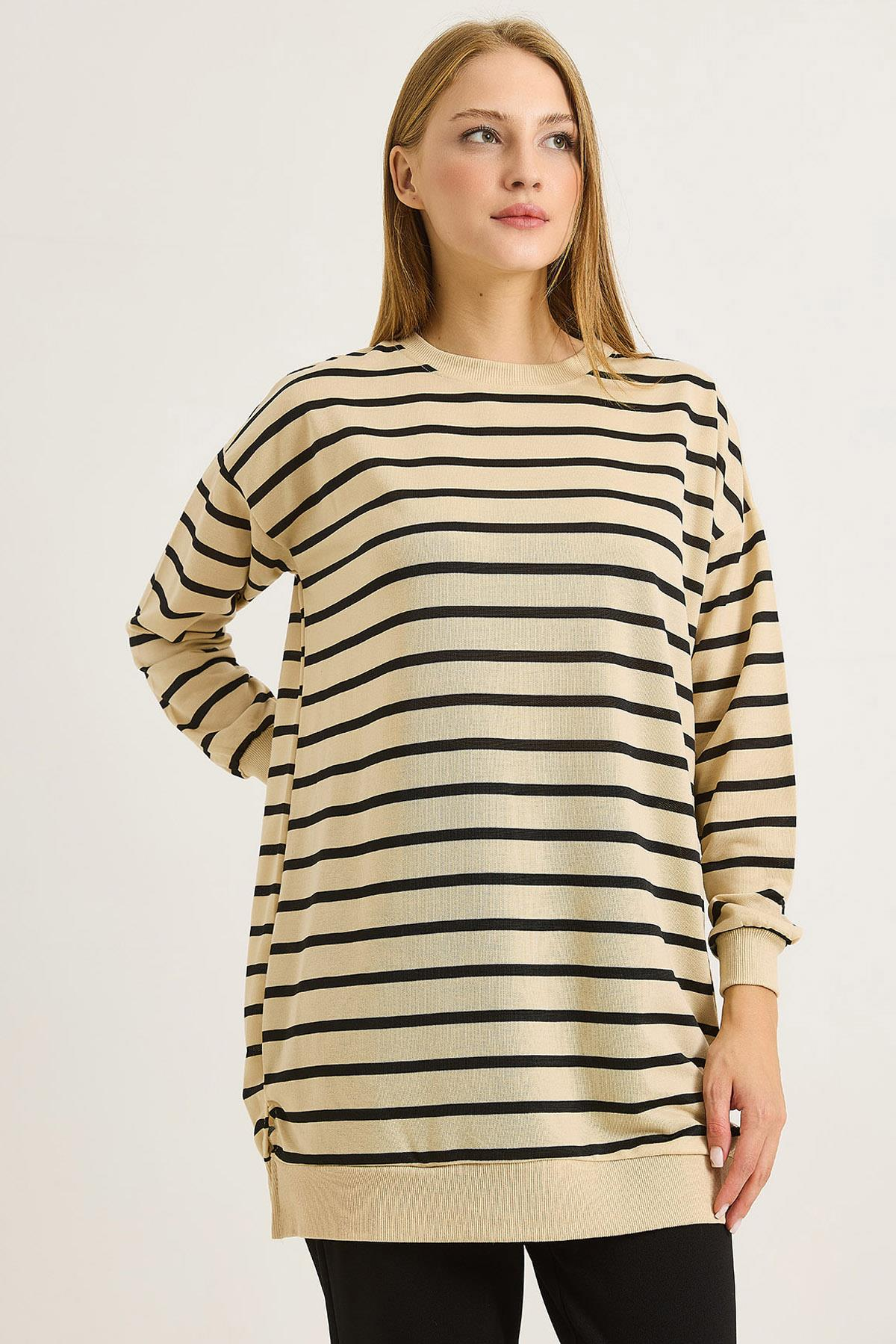 Kadın Çizgili Bisiklet Yaka Tunik Siyah (500751TNKXSYH)