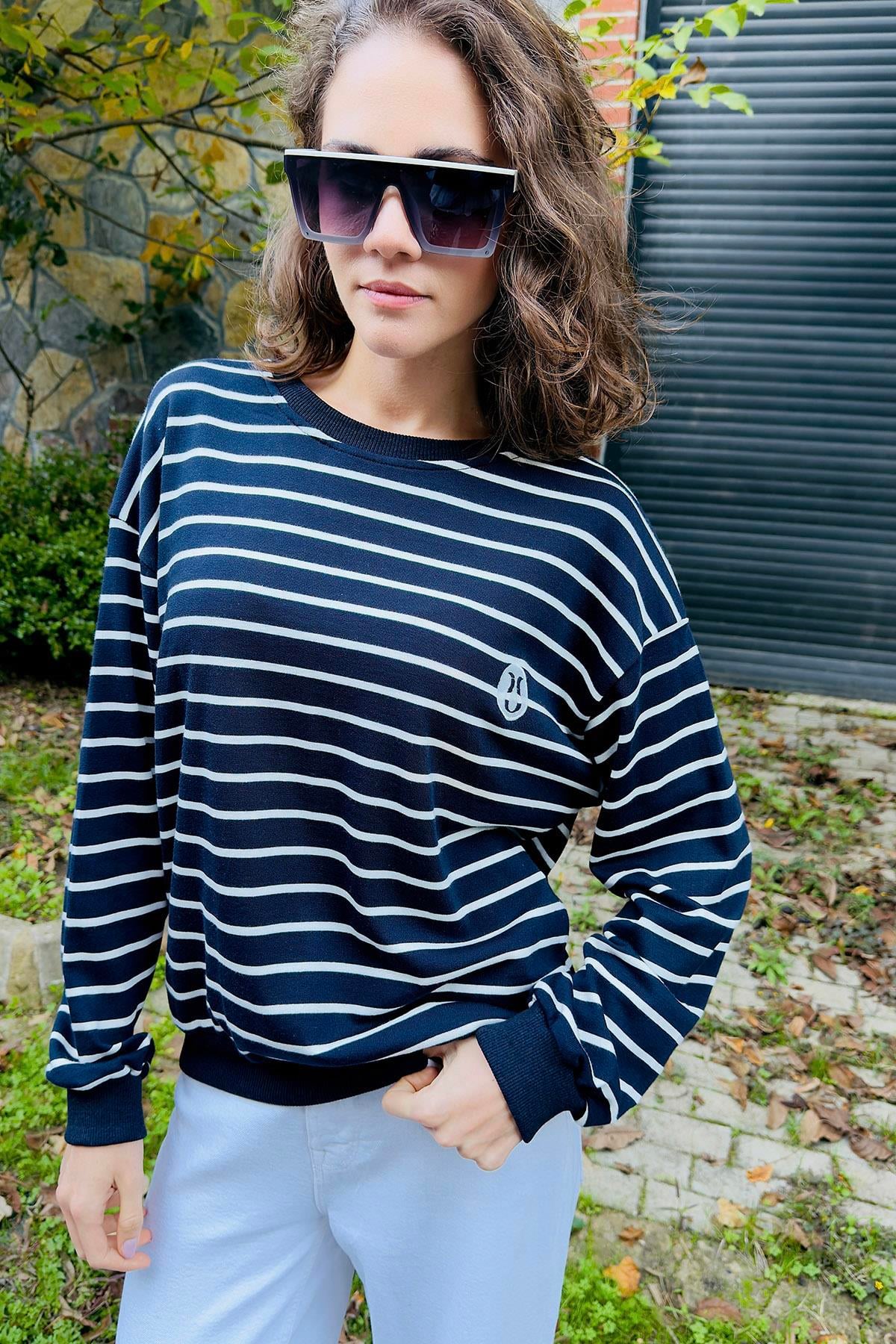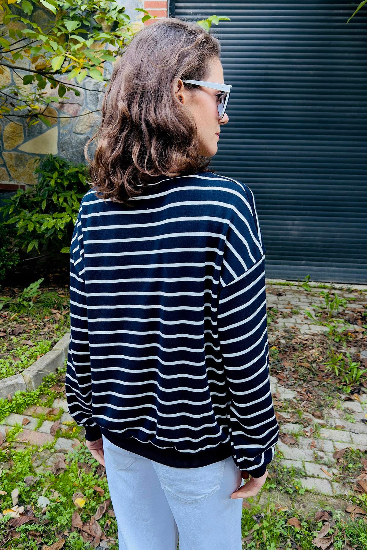 Kadın Çizgili Lacivert Sweat Şardonsuz 3 iplik (500904SWTXLCV)