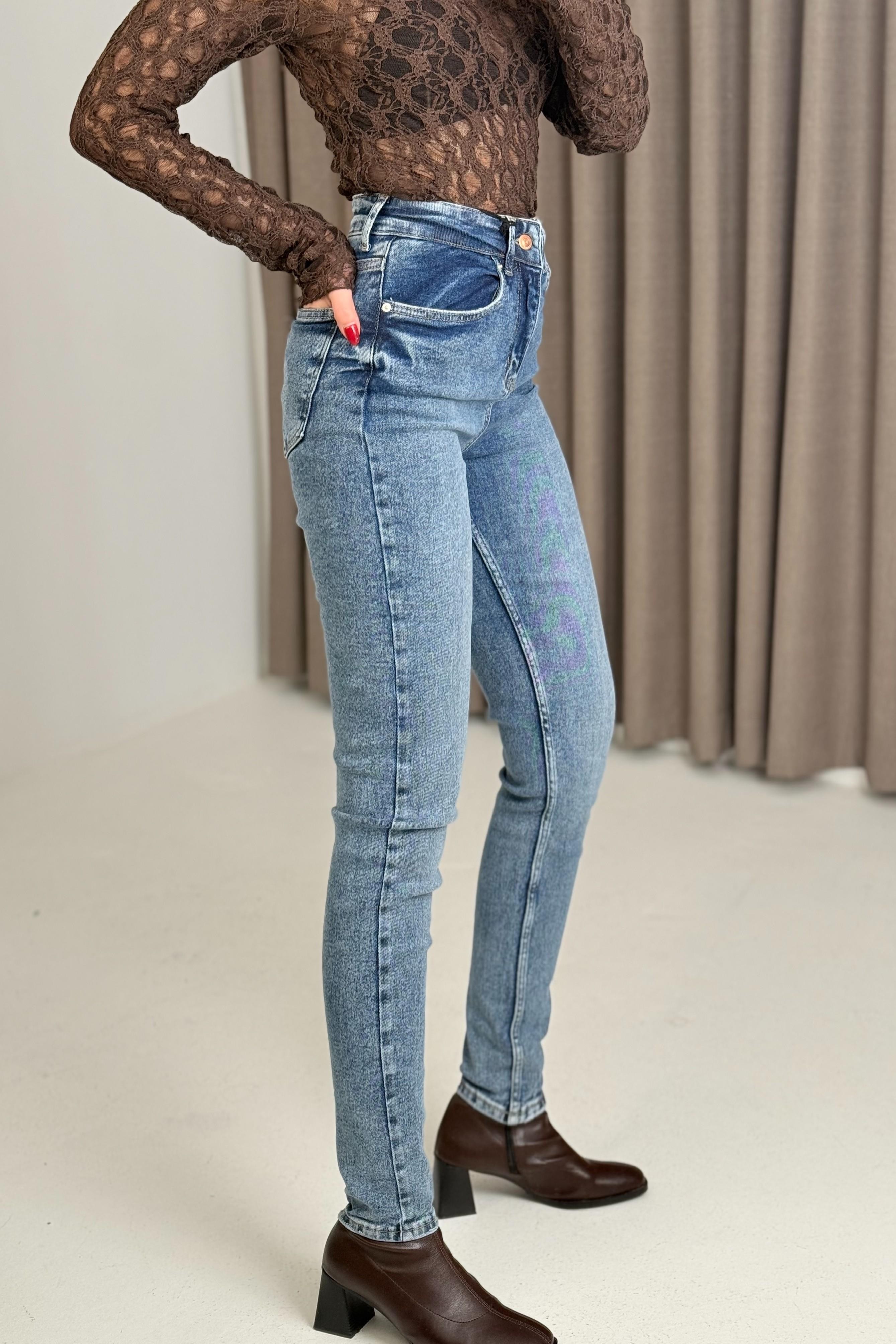 Kadın Dar Paça Yüksek Bel Kot Pantolon Mavi