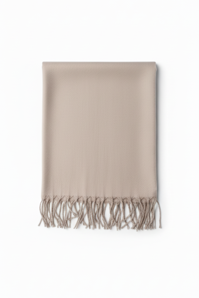 Kadın Dikişsiz Püsküllü Şık Bej Şal 150*50 CM
