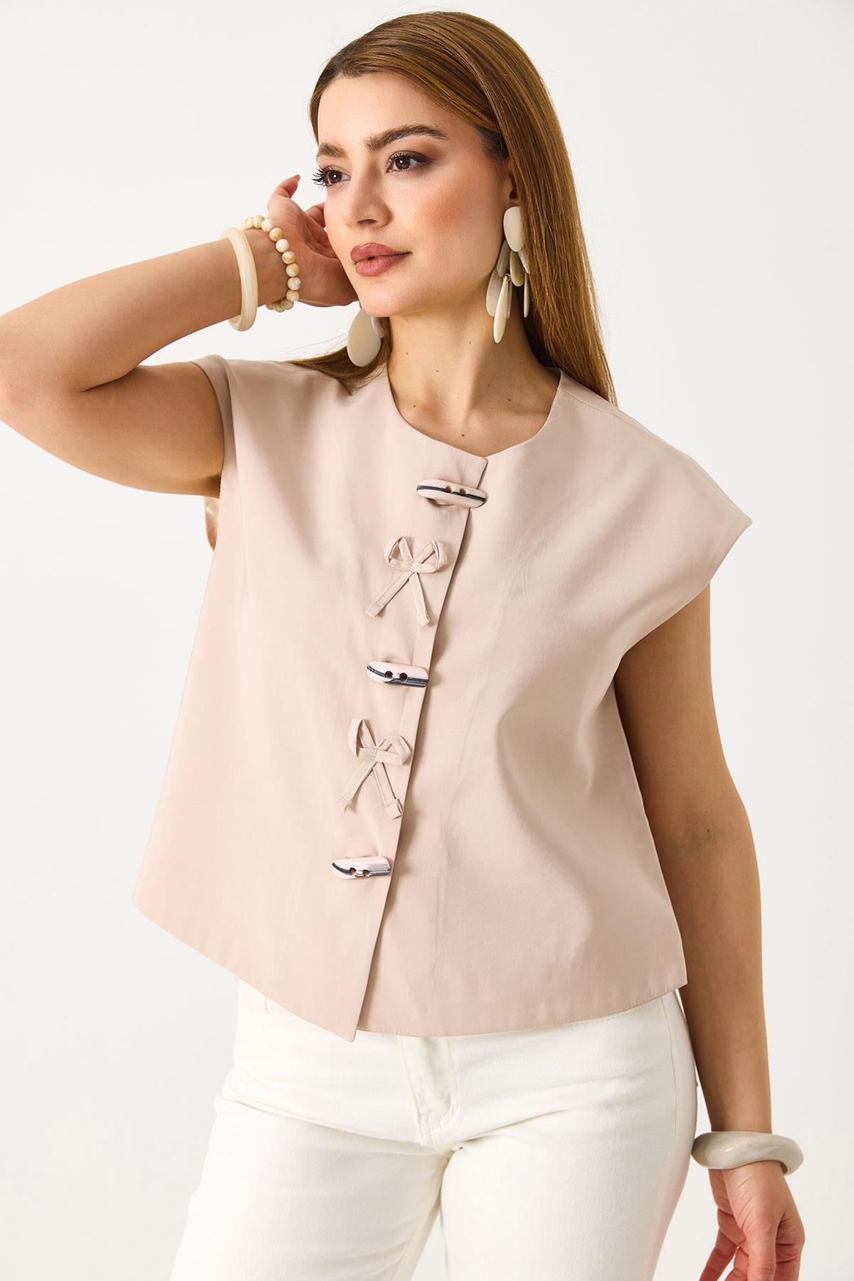 Kadın Düğme Detaylı Sıfır Kol Yelek Bej (255298YLKXBEJ)