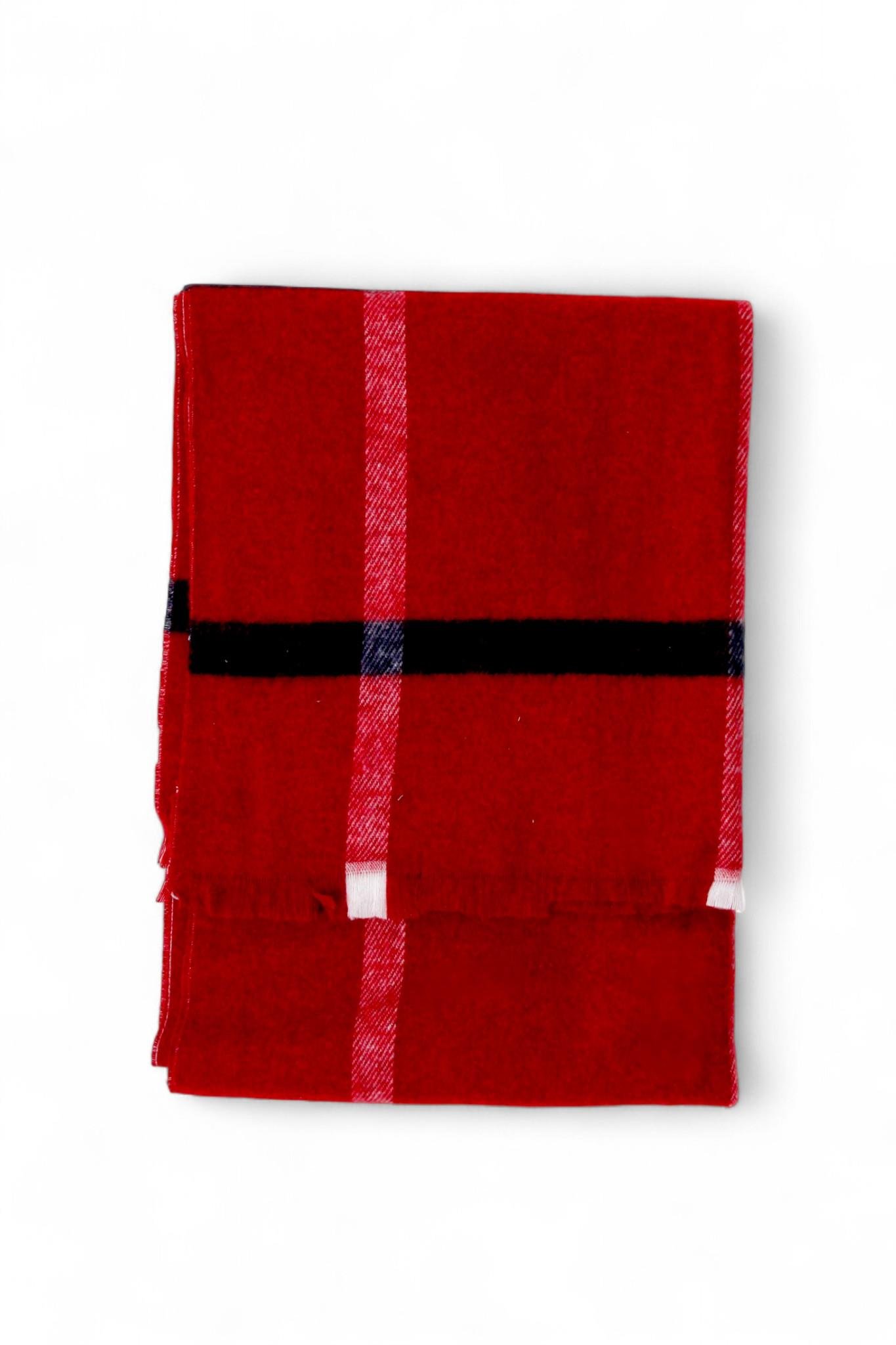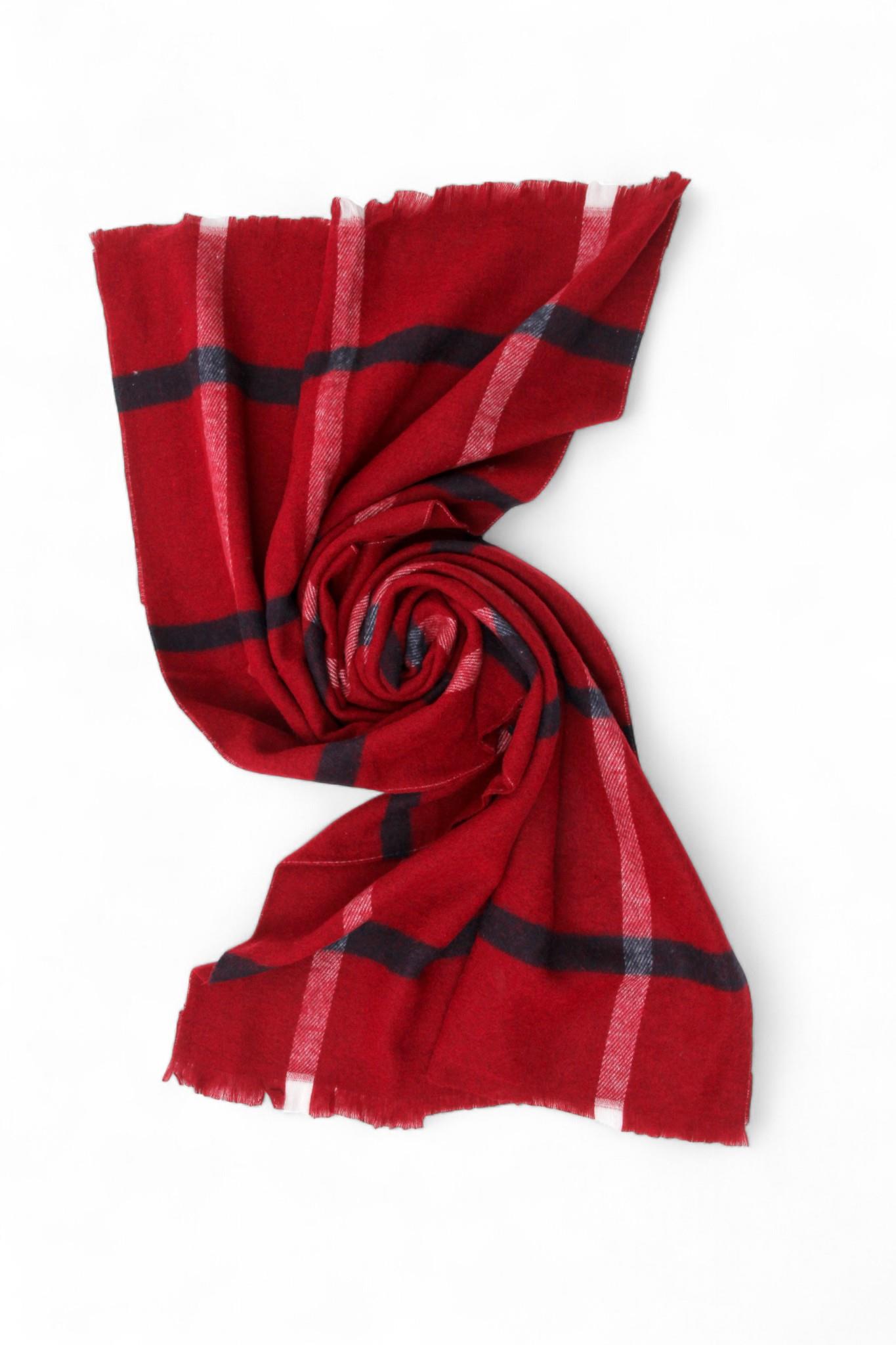 Kadın Ekose Desen Püsküllü Bordo Şal