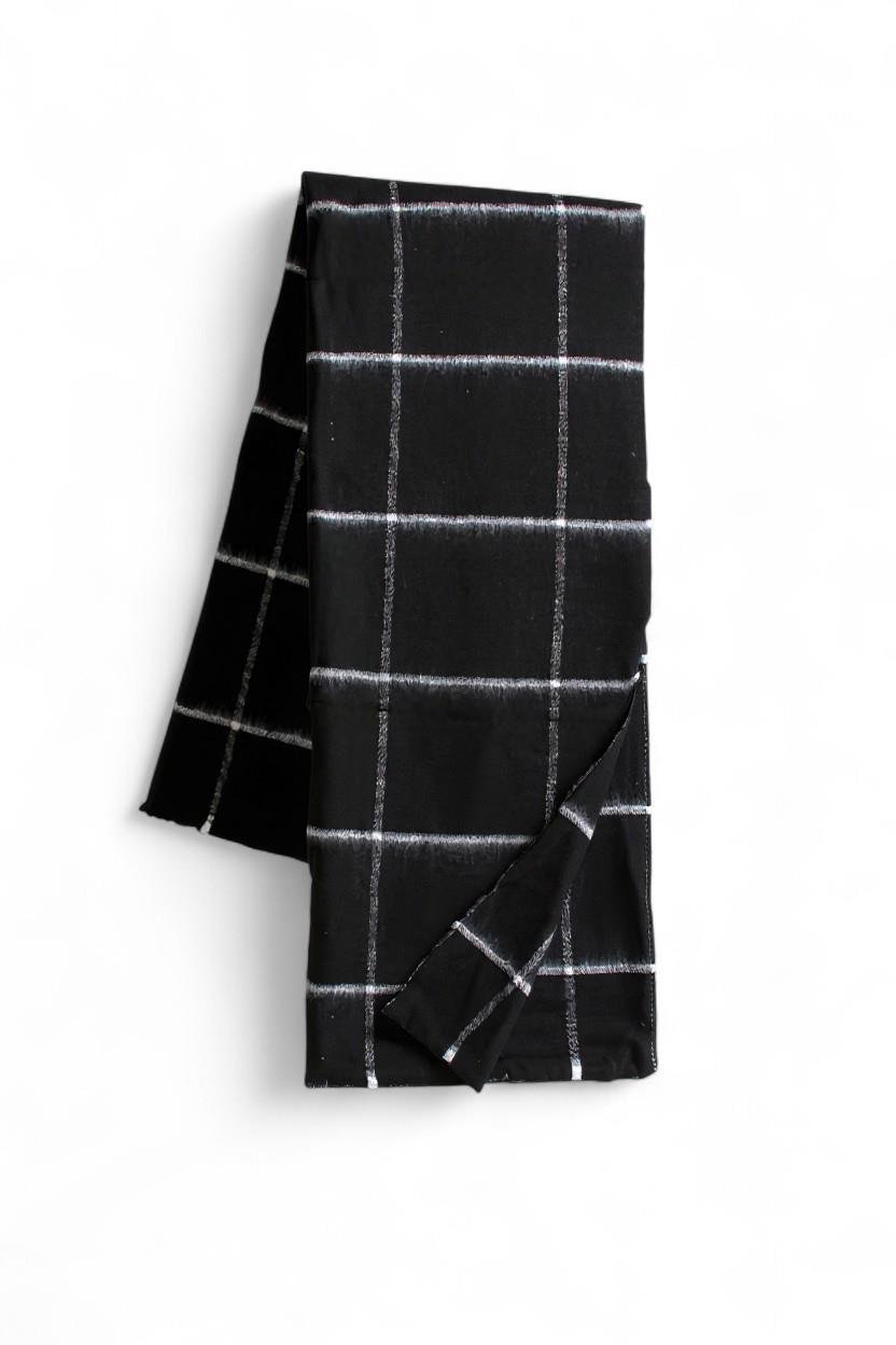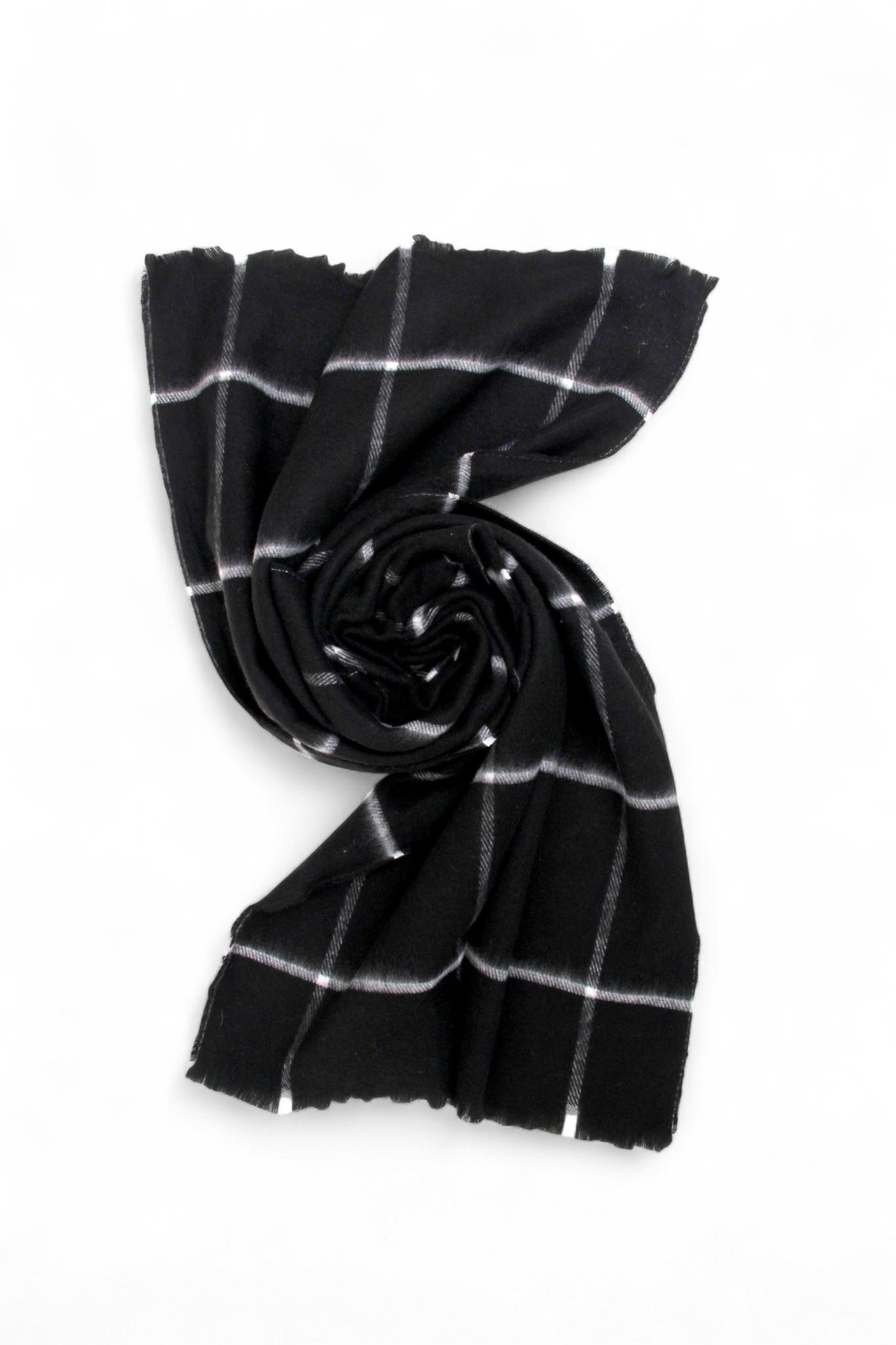 Kadın Ekose Desen Püsküllü Siyah Şal