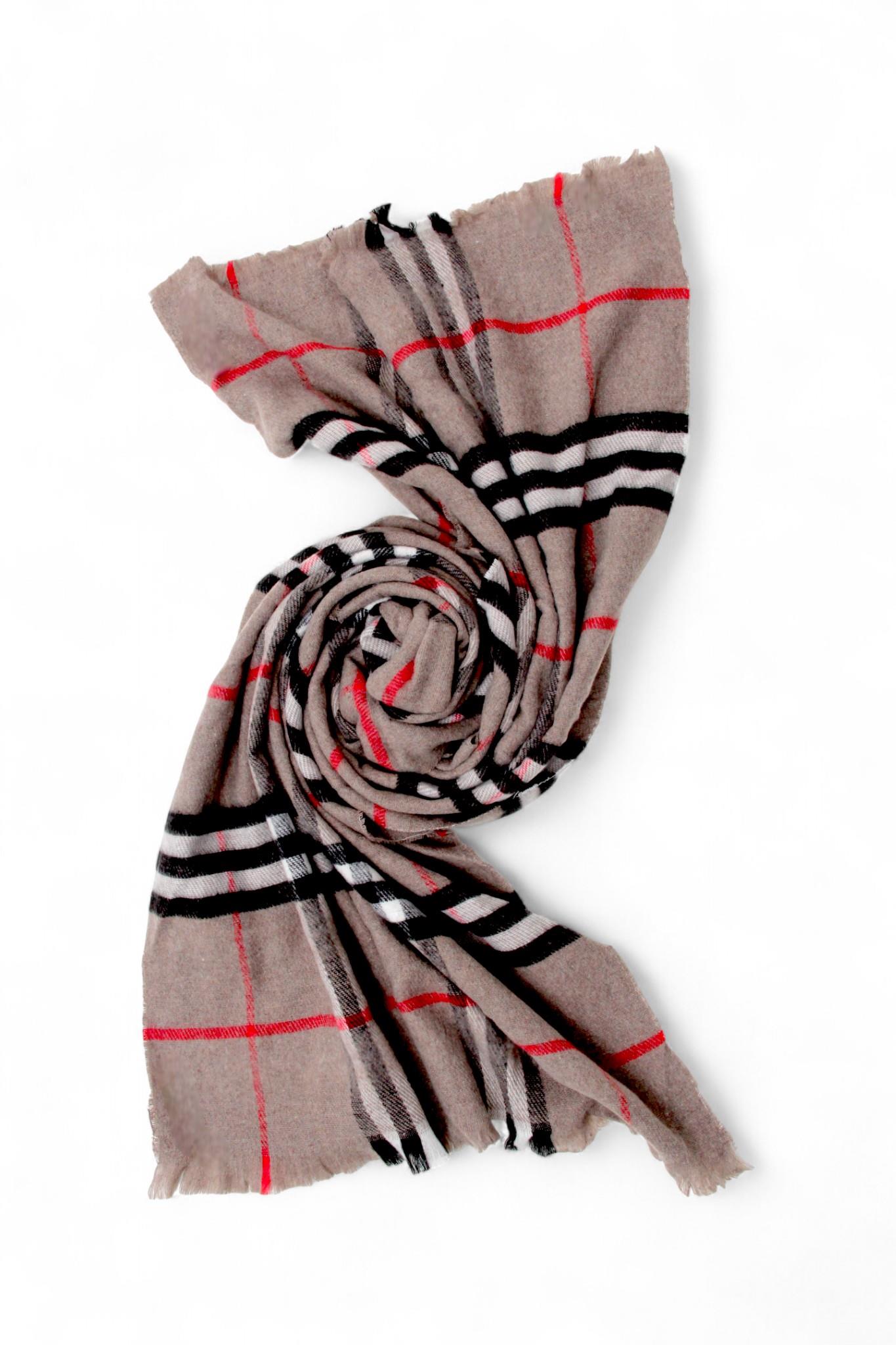 Kadın Ekose Desen Püsküllü Vizon Şal (252428SALXVZN)