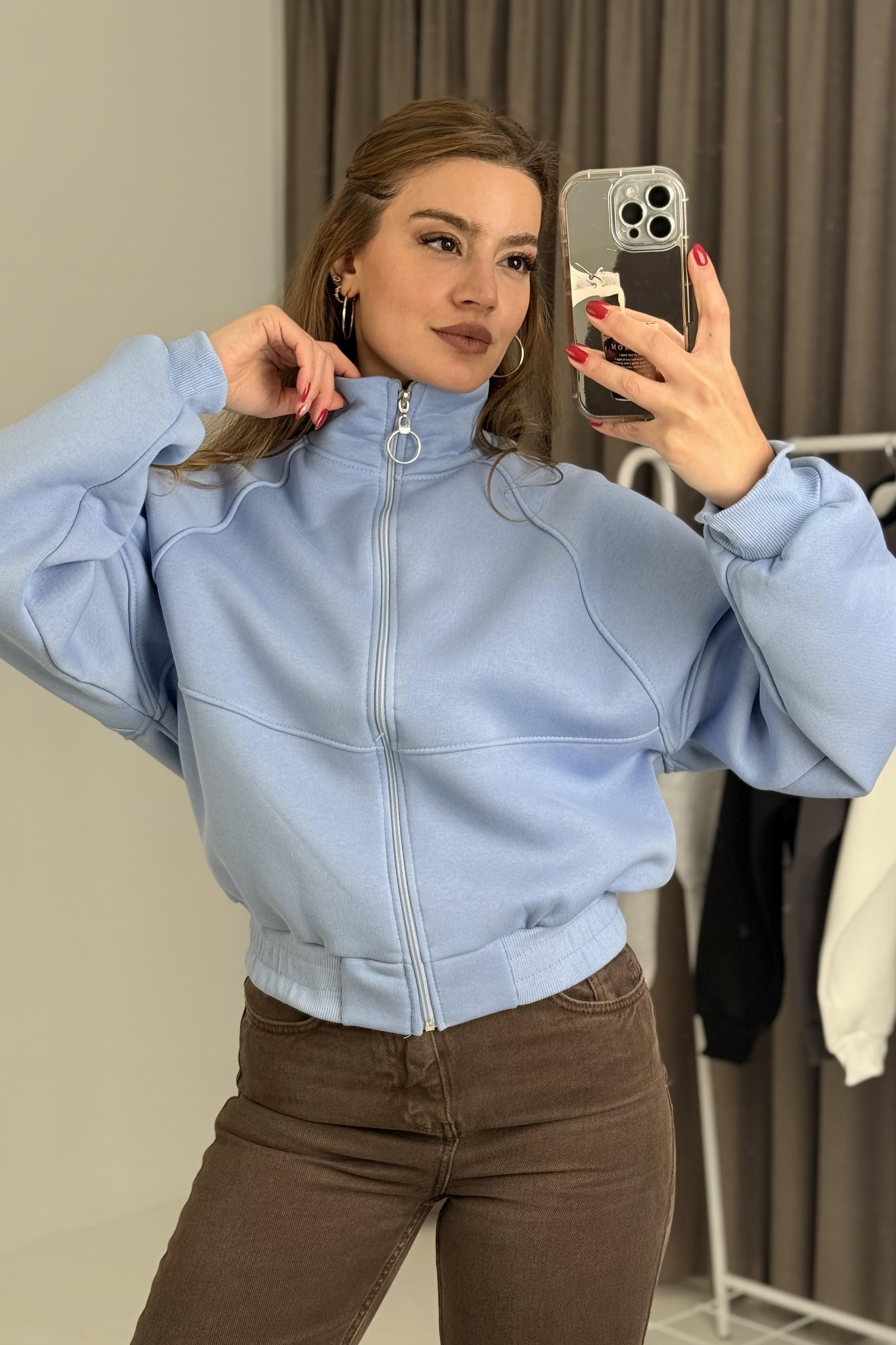 Kadın Fermuarlı Dikiş Detaylı Sweat Mavi (5500912SWTXMVİ)