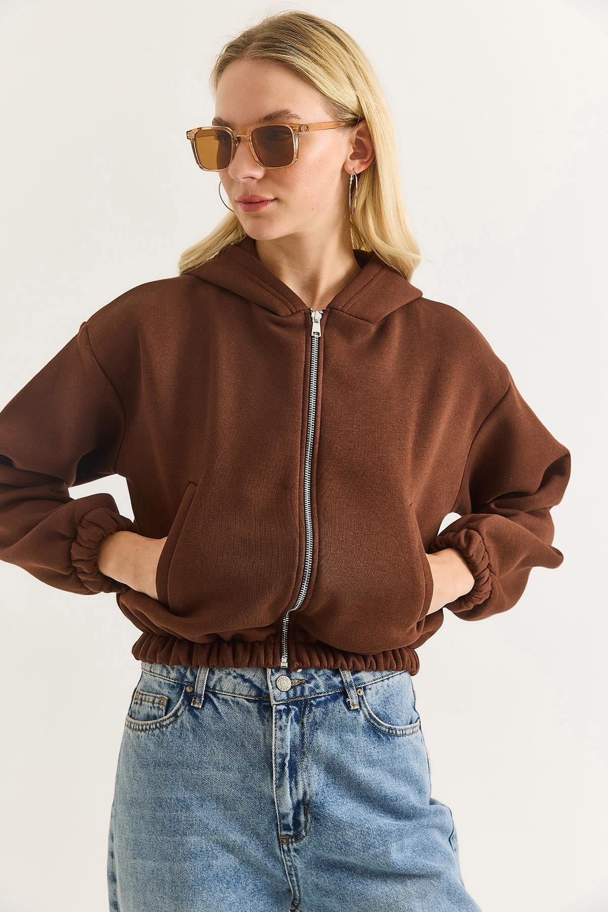 Kadın Fermuarlı Üç İplik Hırka Kahverengi (500815HRKXKHV)