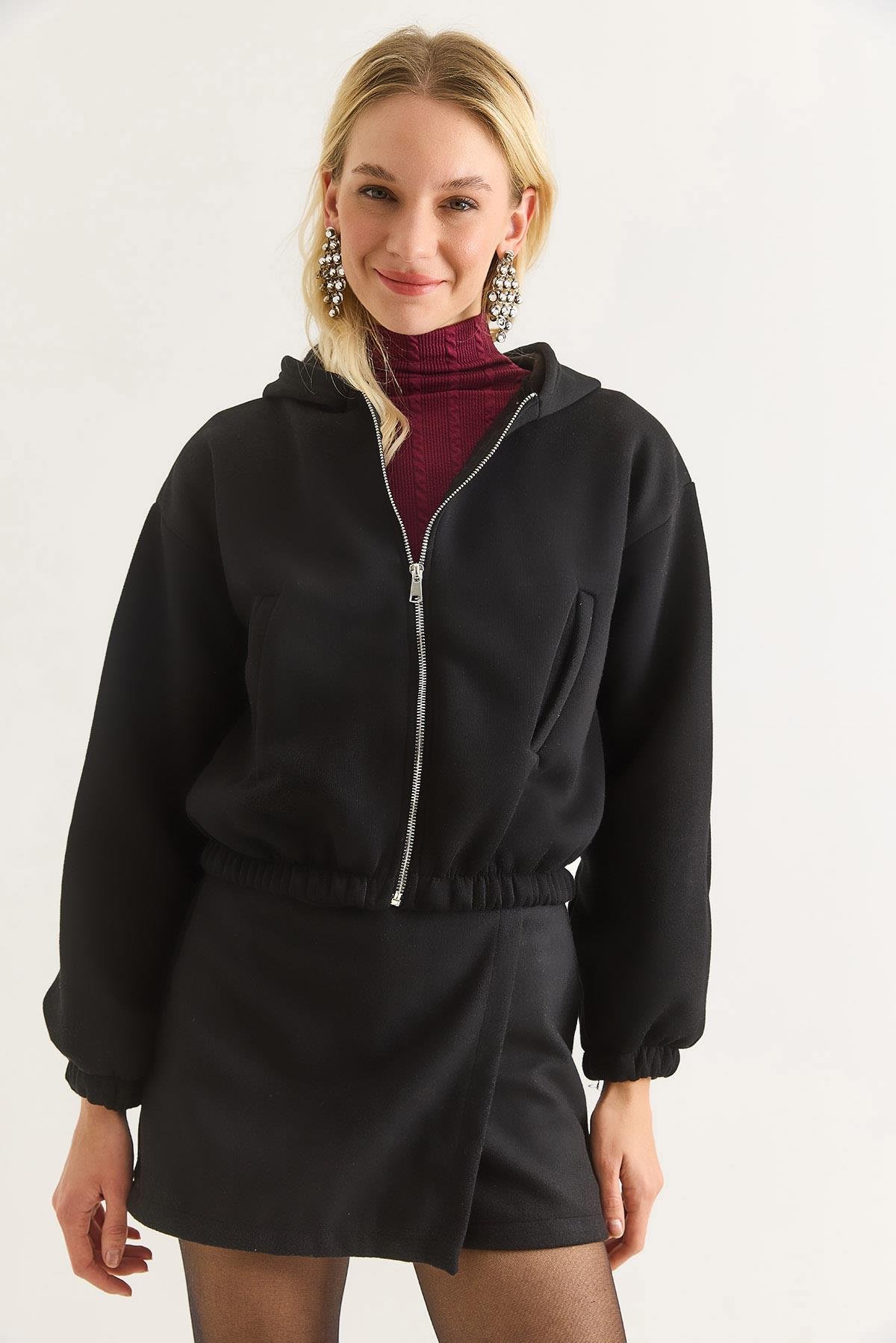 Kadın Fermuarlı Üç İplik Hırka  Siyah