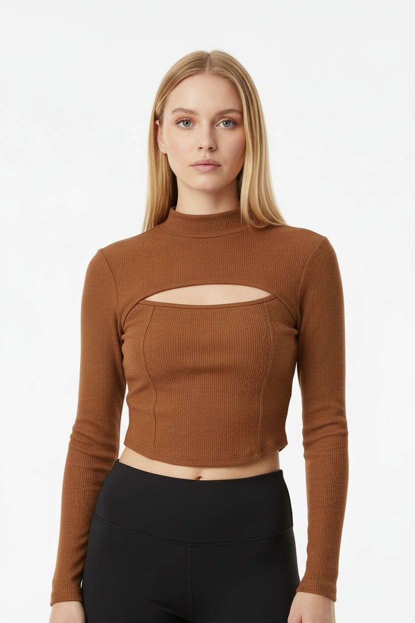 Kadın Fitilli Dekolteli Bluz Kahverengi