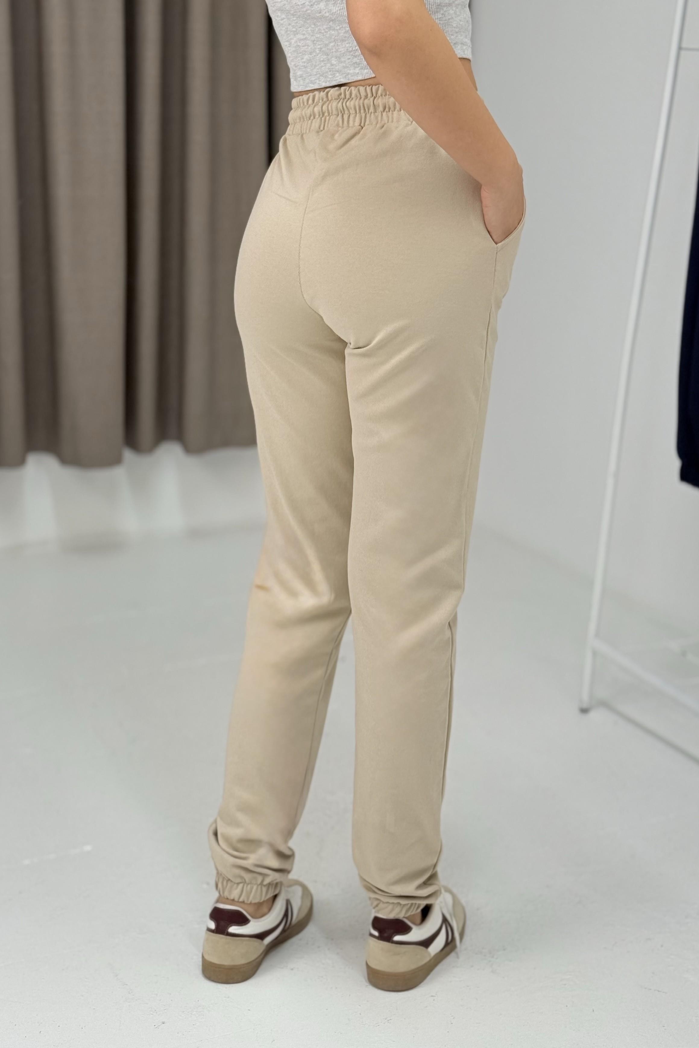 Kadın İki İplik Paçası Lastikli Eşofman Altı Bej (600137EŞFXBEJ)
