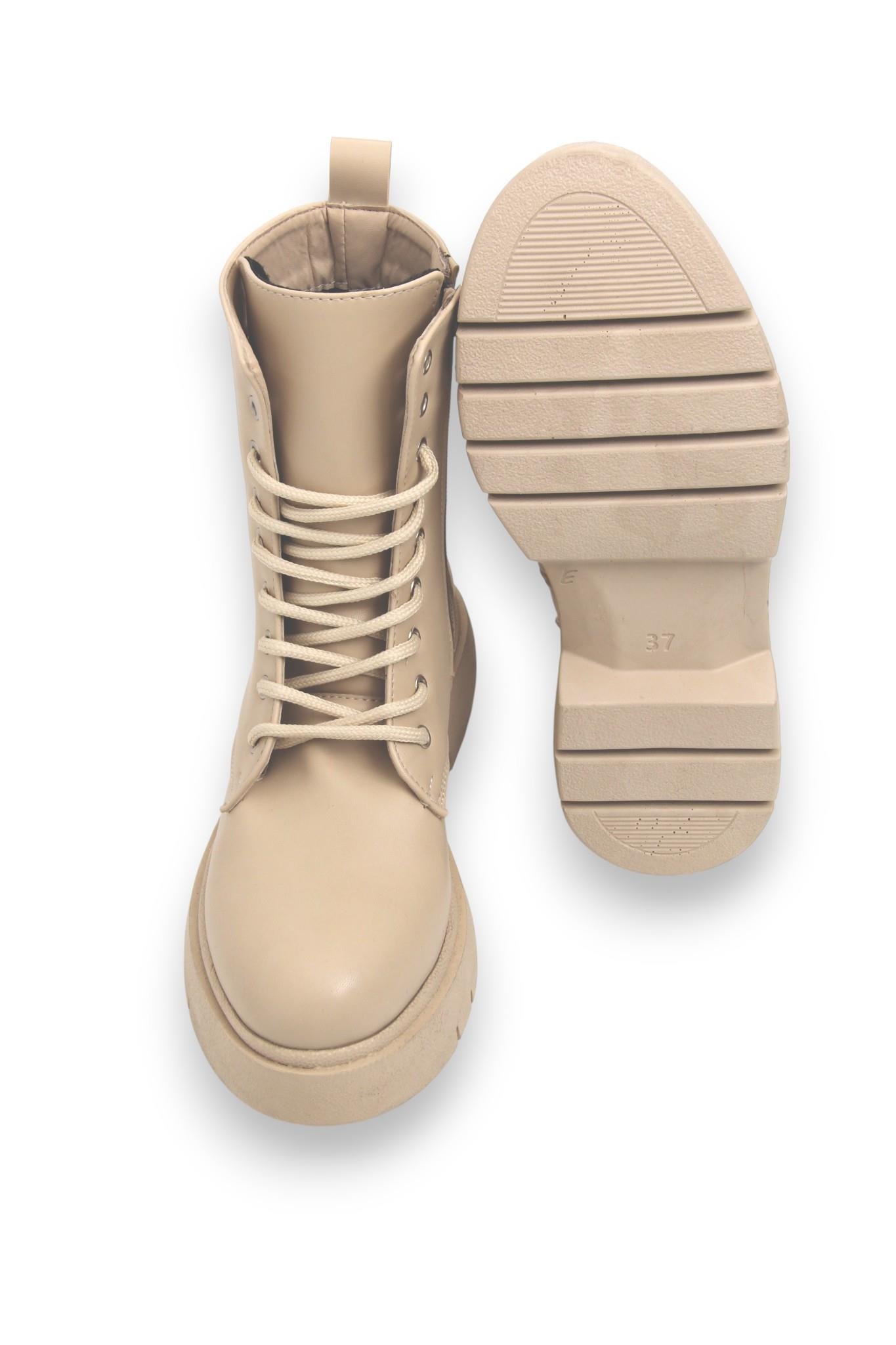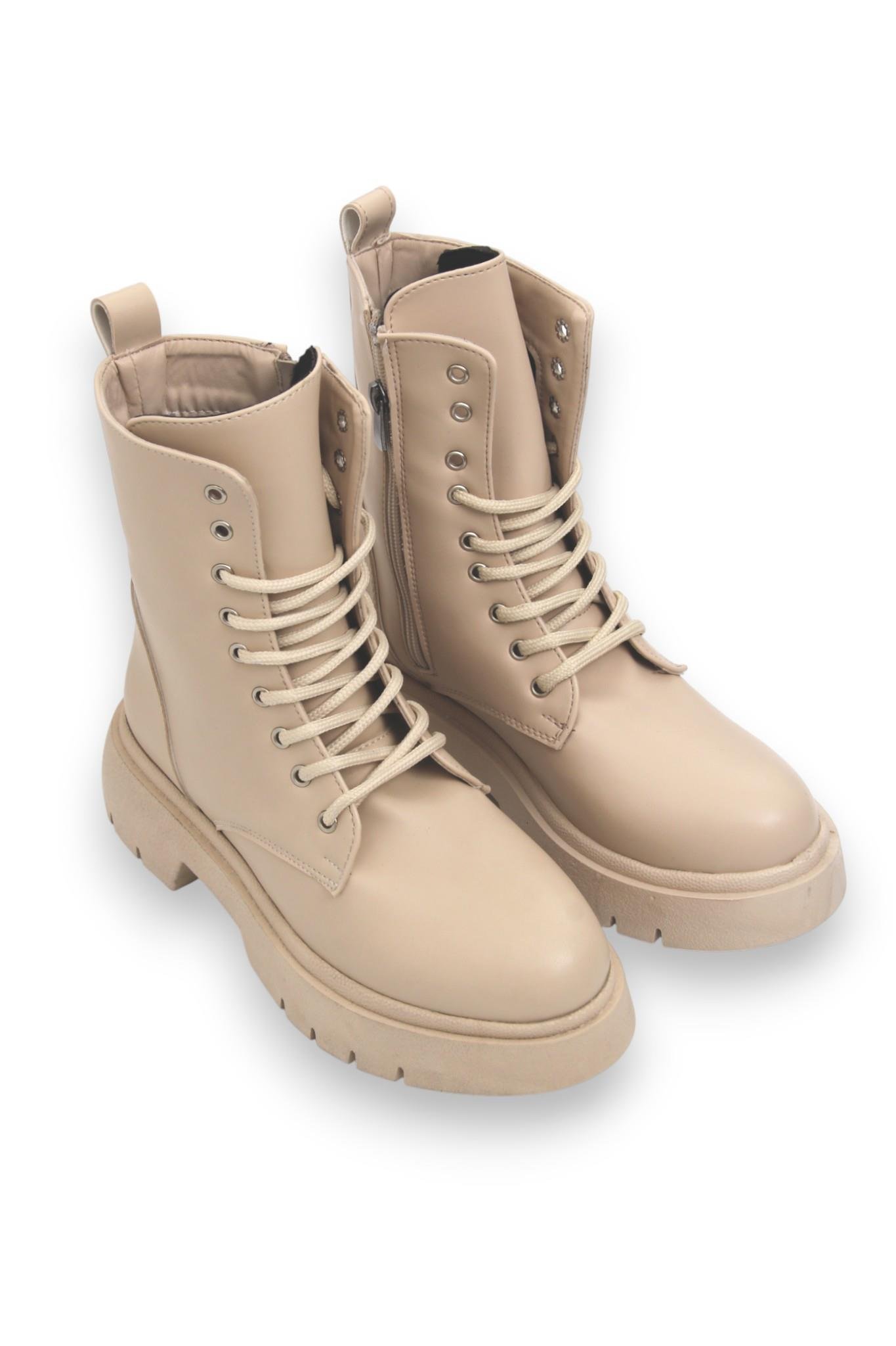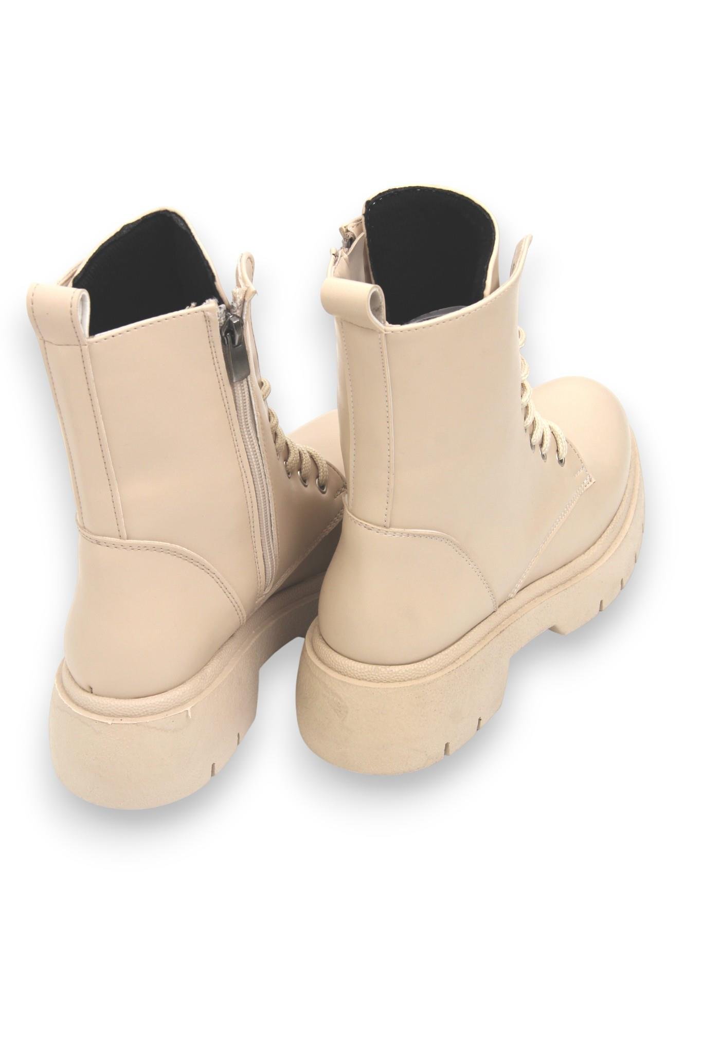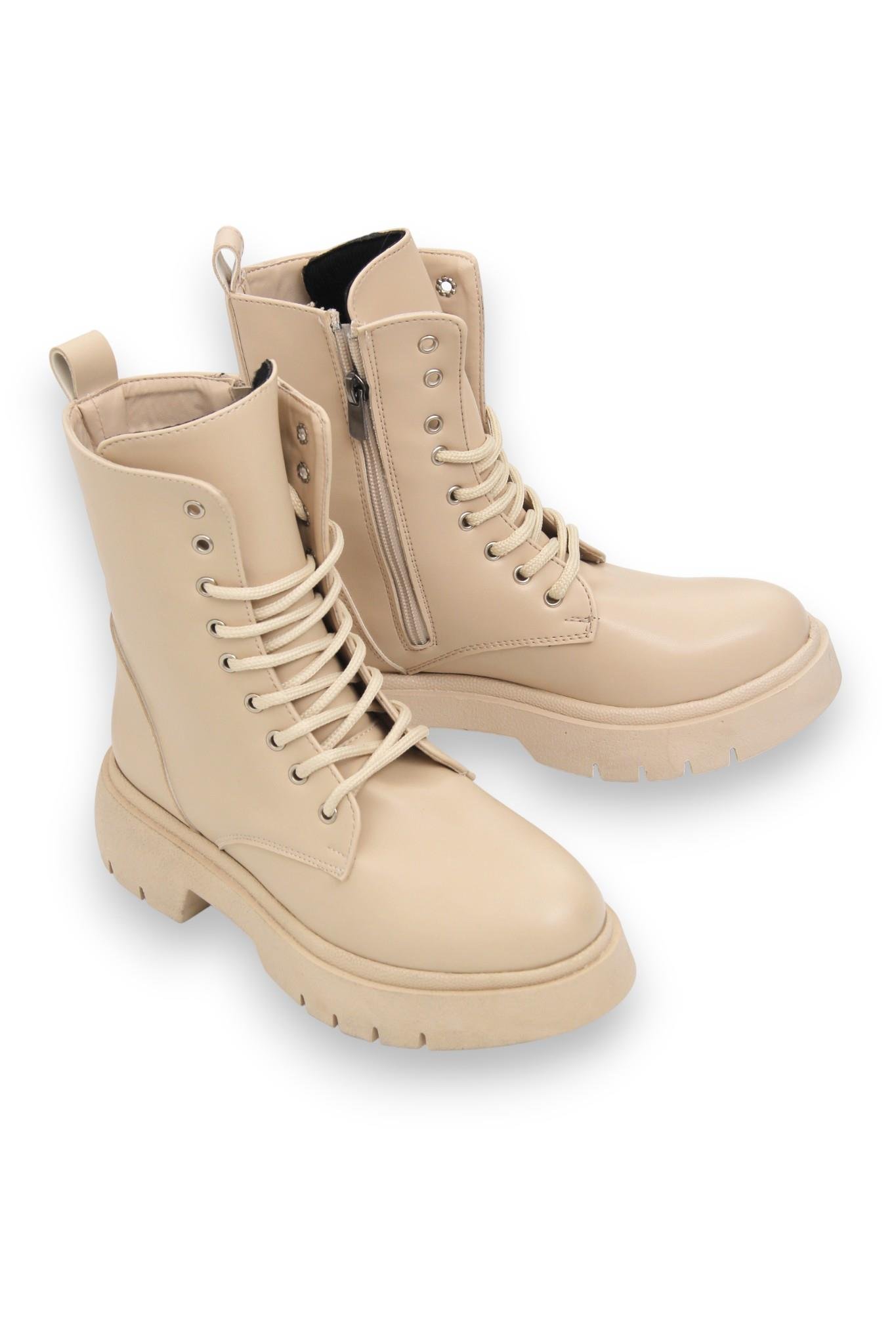 Kadın Kalın Taban Bağcıklı Krem Postal / Bot (252422AYKXKRM)