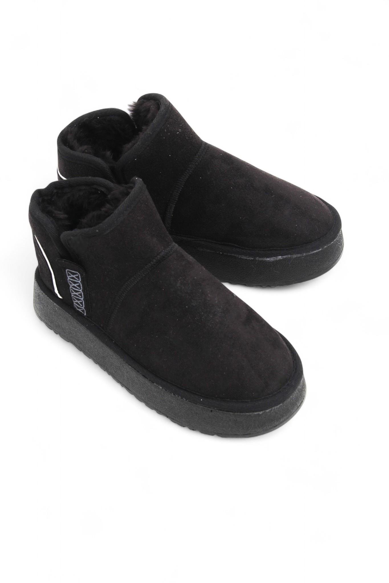 Kadın Kalın Taban Süet İçi Kürklü Siyah Bot (252412AYKXSYH)