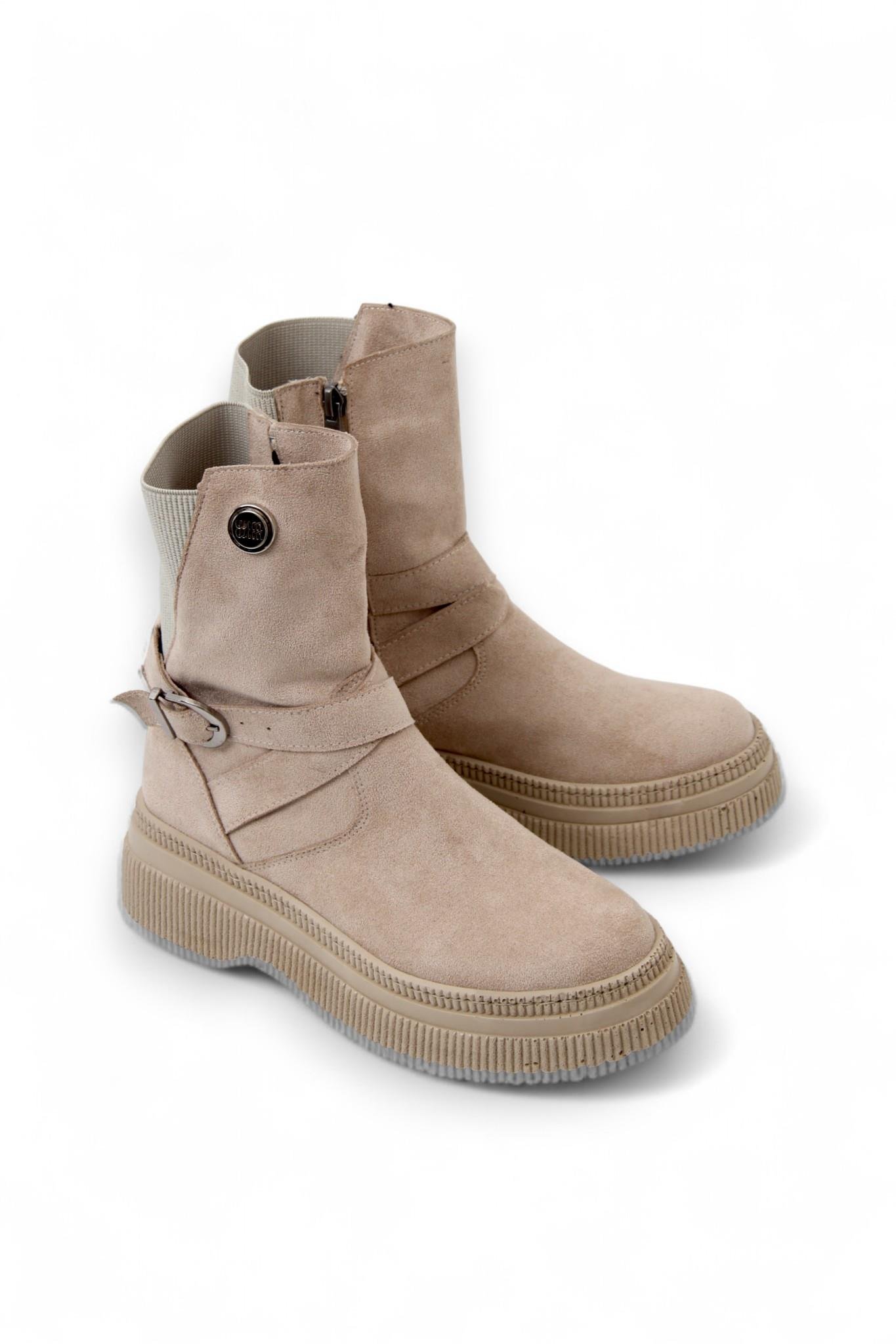 Kadın Kalın Taban Yan Fermuarlı Arkası Lastikli  Vizon Bot