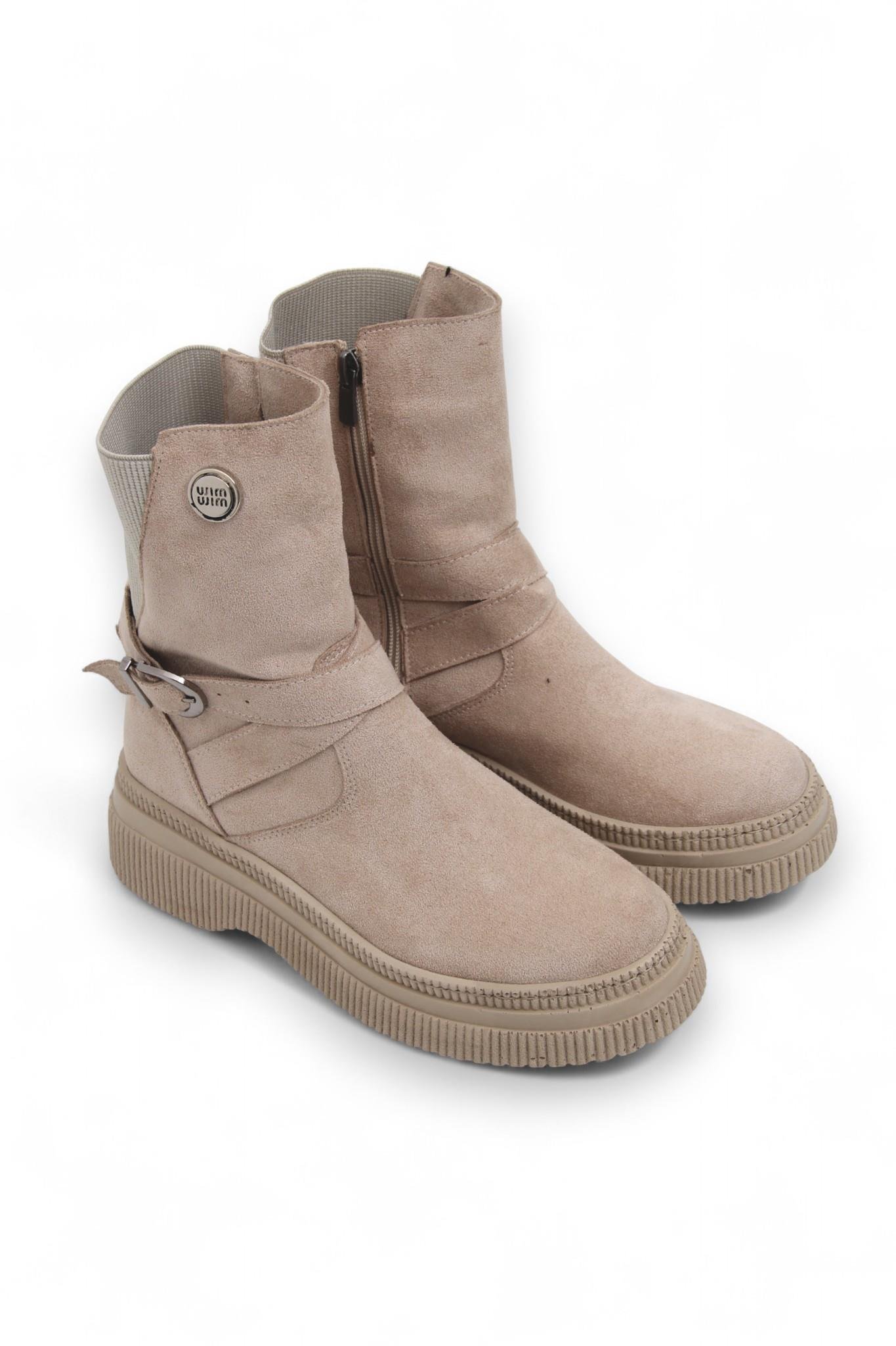 Kadın Kalın Taban Yan Fermuarlı Arkası Lastikli Vizon Bot (252420AYKXVZN)