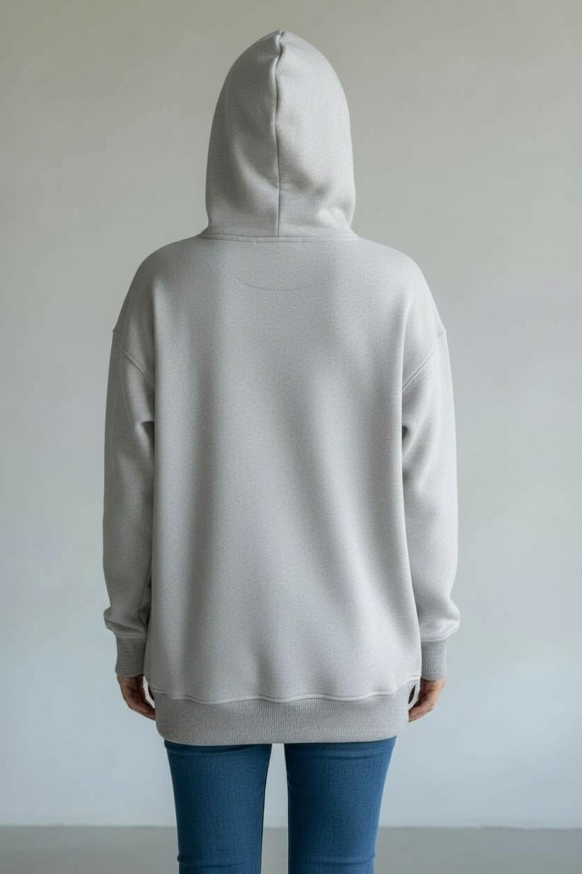 Kadın Kapüşonlu 3 İplik Şardonlu Gri Sweatshirt