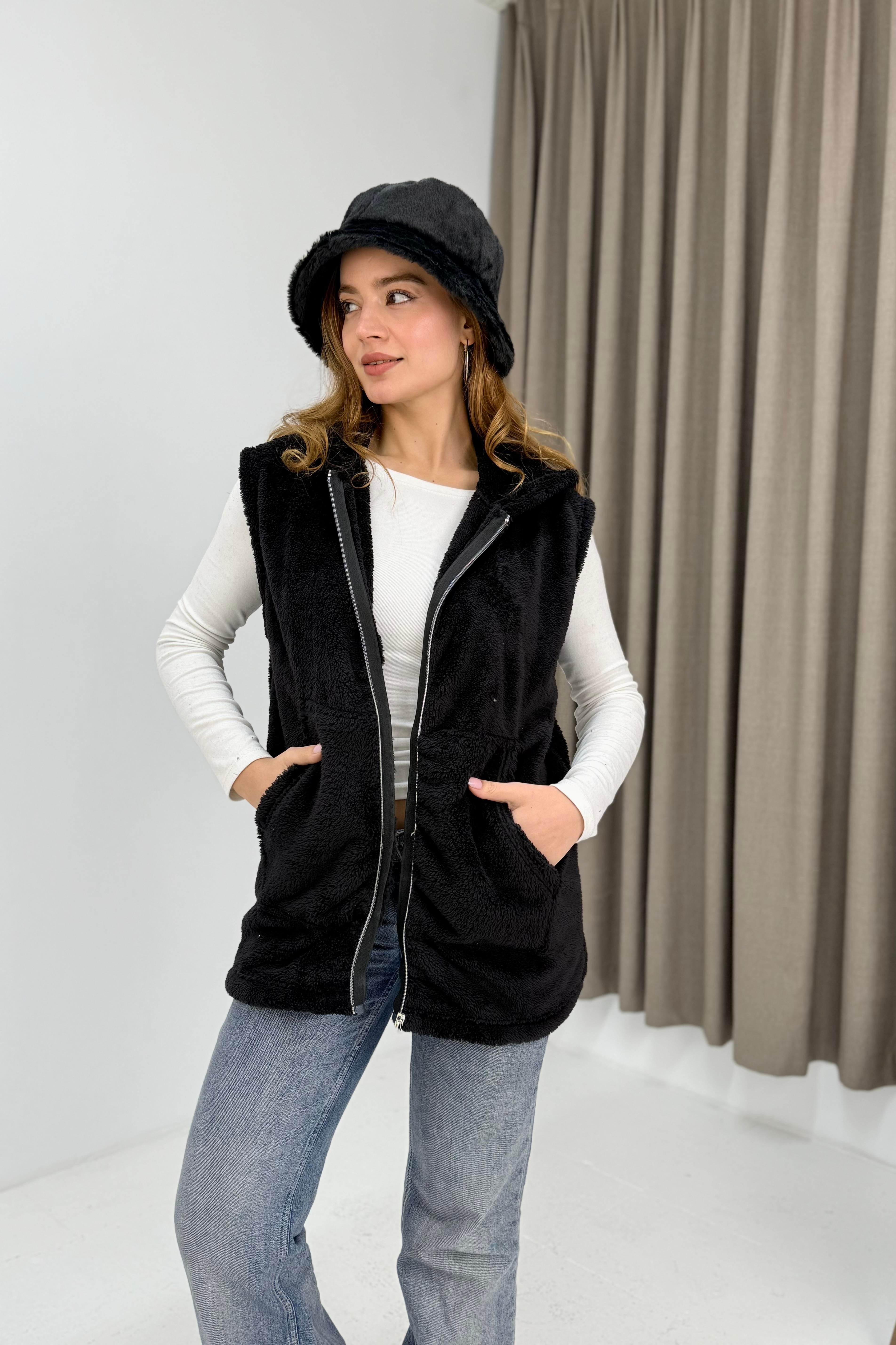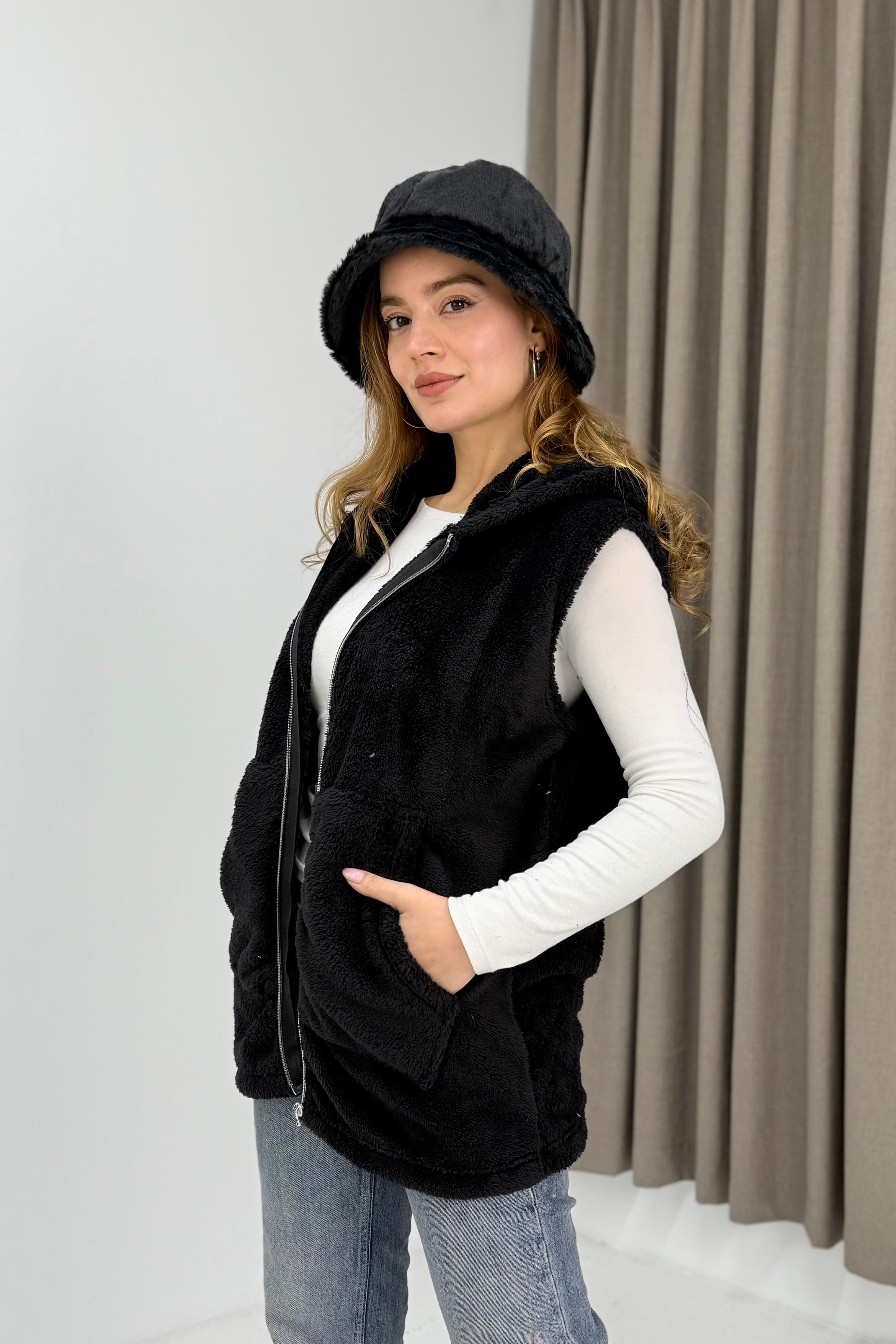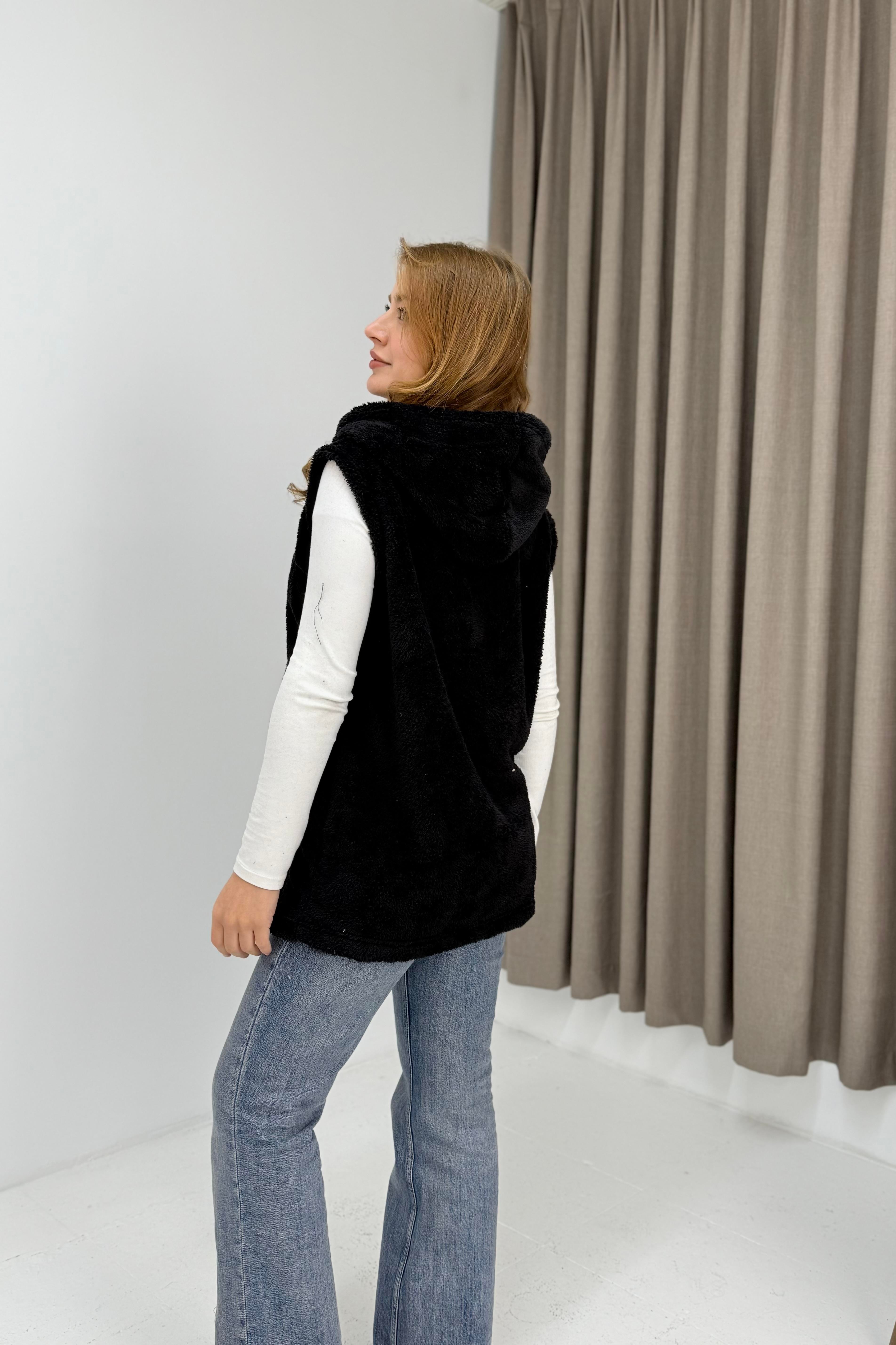 Kadın Kapüşonlu Kanguru Cepli Welsoft Sweat Siyah