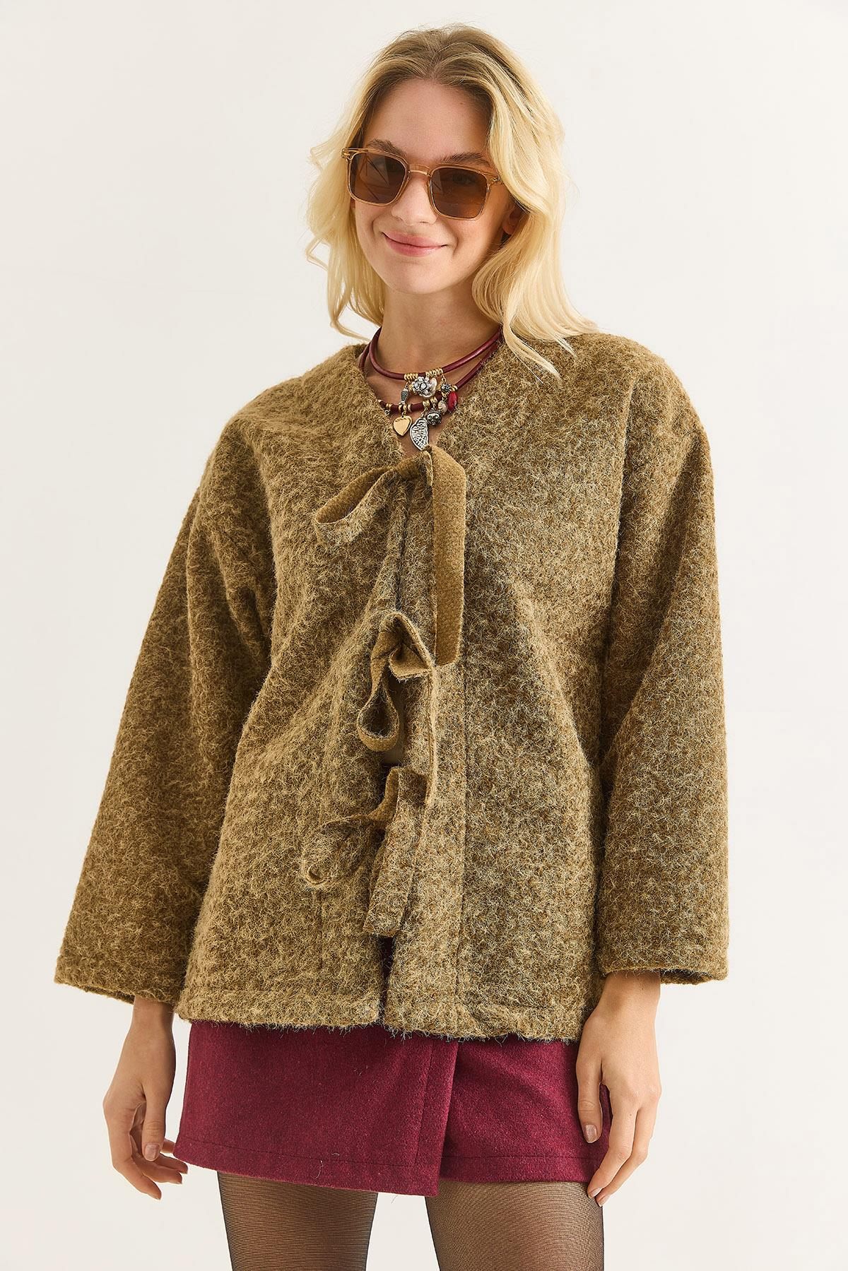 Kadın Kaşe Önden Bağlamalı Ceket Vizon (500825CKTXVZN)