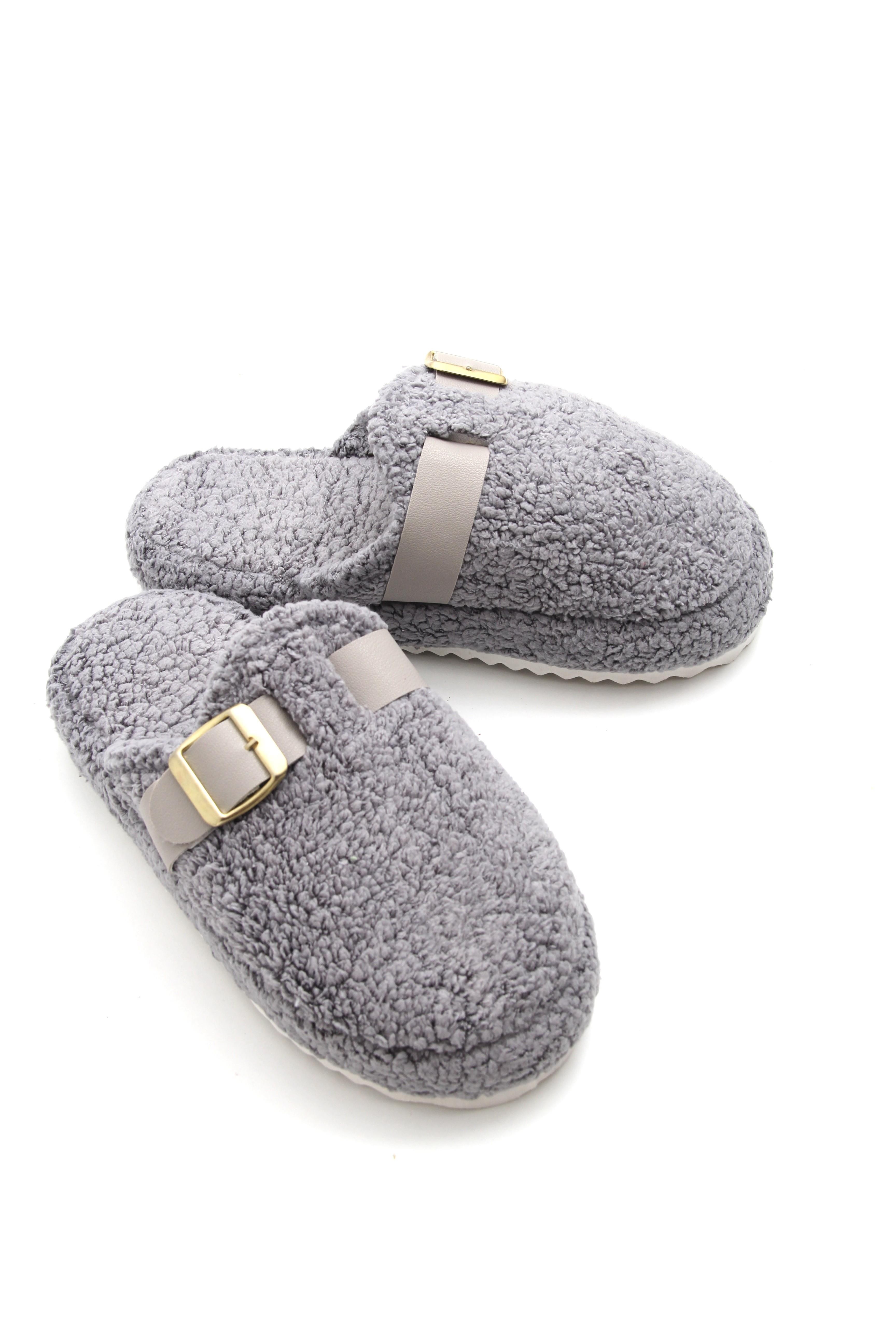 Kadın Kışlık  Tek Tokalı Gri Ev Terliği